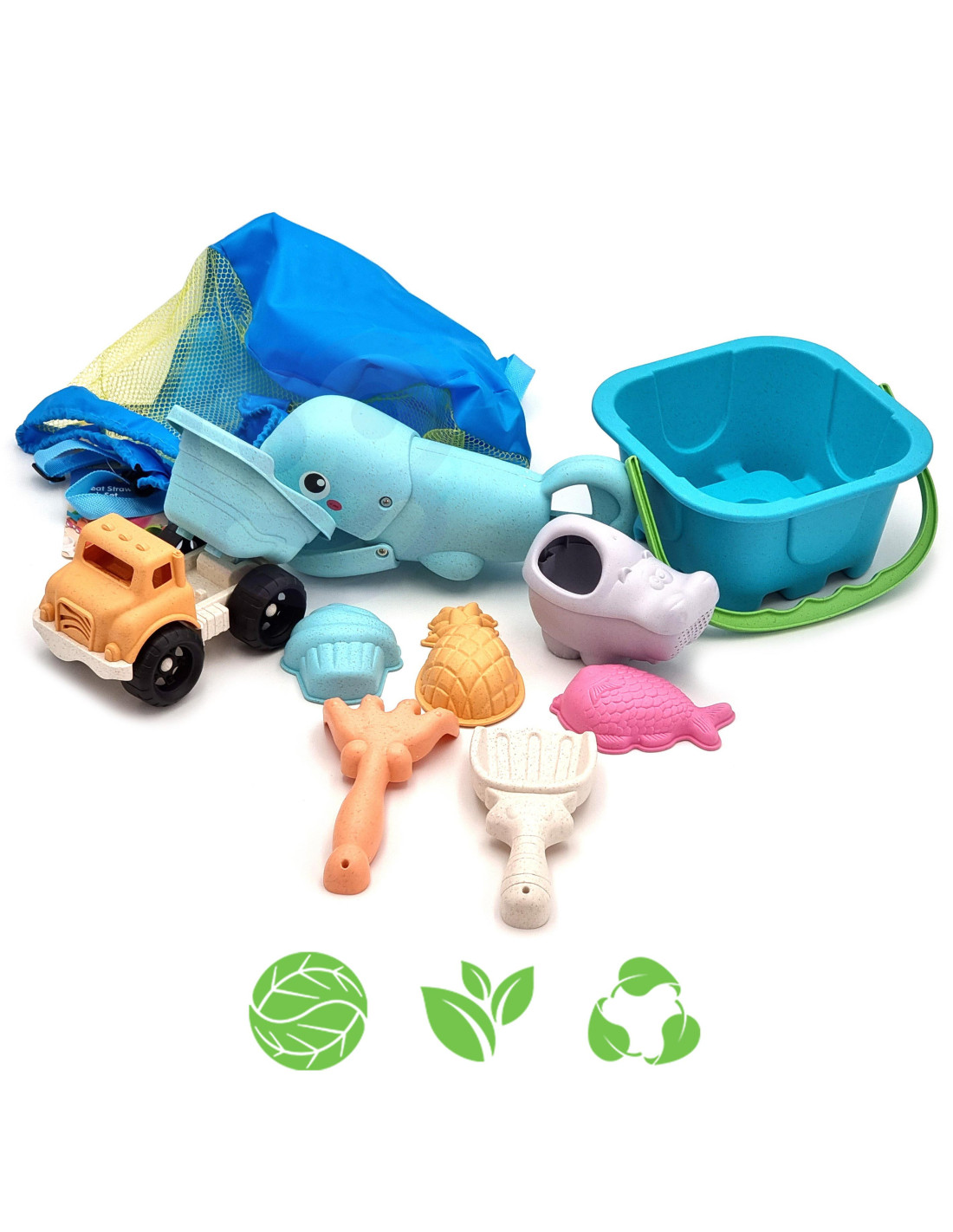 WOOPIE GREEN Zestaw do Piasku w Wiaderku z Łopatką i Chwytakiem do Piasku + Wywrotka 9 el. BIODEGRADOWALNY ORGANICZNY MATERIAŁ