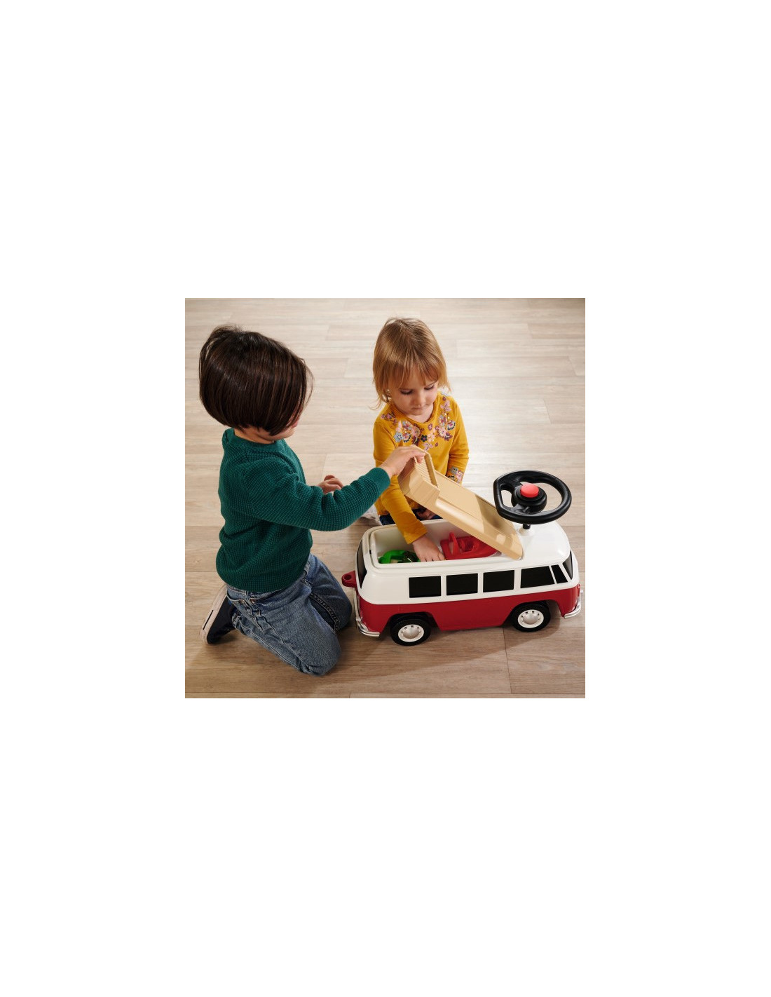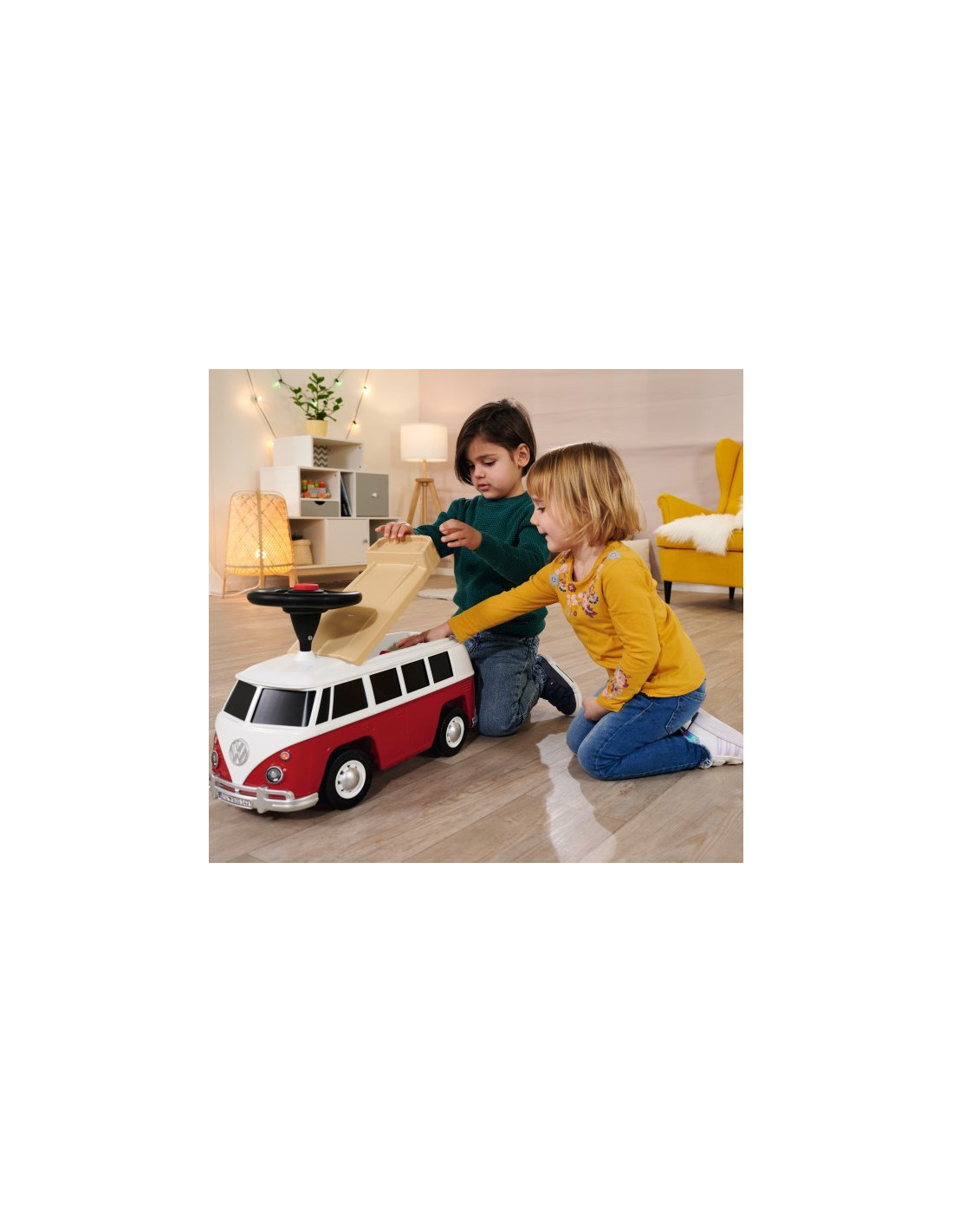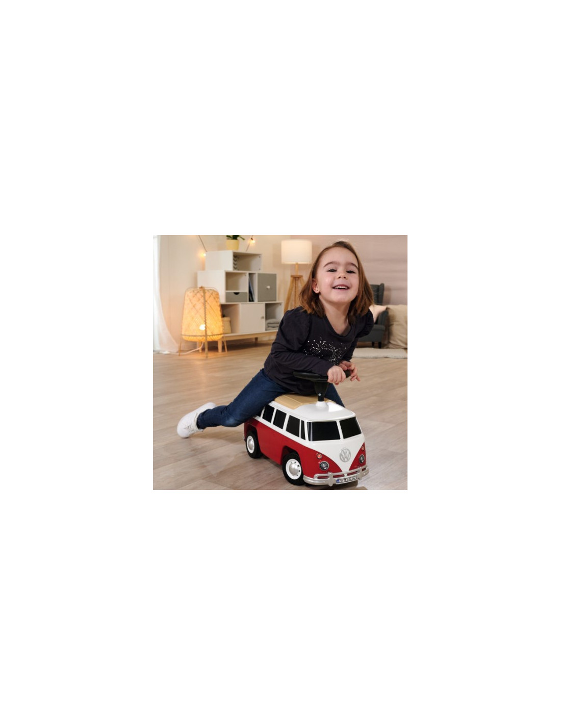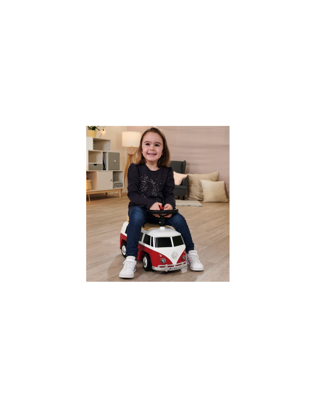 Jeździk Van od renomowanej firmy BIG to pojazd przypominający prawdziwy samochód Volkswagen. Jest stabilny i bezpieczny - idealny dla dzieci, które zaczynają swoją przygodę z pojazdami. Zdejmowany dach auta skrywa przestronne wnętrze, które zapewnia wystarczająco dużo miejsca na figurki do zabawy i lalki do 12 cm. Mogą towarzyszyć małym poszukiwaczom przygód w ich wycieczkach i zawsze są gotowi dotrzymać im towarzystwa podczas krótkich przerw na odpoczynek. Van jest również wyposażony w wysokiej jakości ciche koła, które są szczególnie lubiane przez rodziców i które pozwalają małym kierowcom spokojnie jeździć po ogrodach i pokojach dziecięcych. Dzięki wyjątkowo miękkim, niebrudzącym plastikowym oponom nie ma również ryzyka pozostawienia śladów na podłodze, dlatego jeździk jest również idealny do użytku w pomieszczeniach. Jeździk zbudowany tak, aby dzieci mogły wypróbować i rozwijać kolejne zdolności - wsiadanie, zsiadanie, odpychanie i kierowanie. Jest to idealna propozycja na prezent dla dziecka od 2 roku życia.