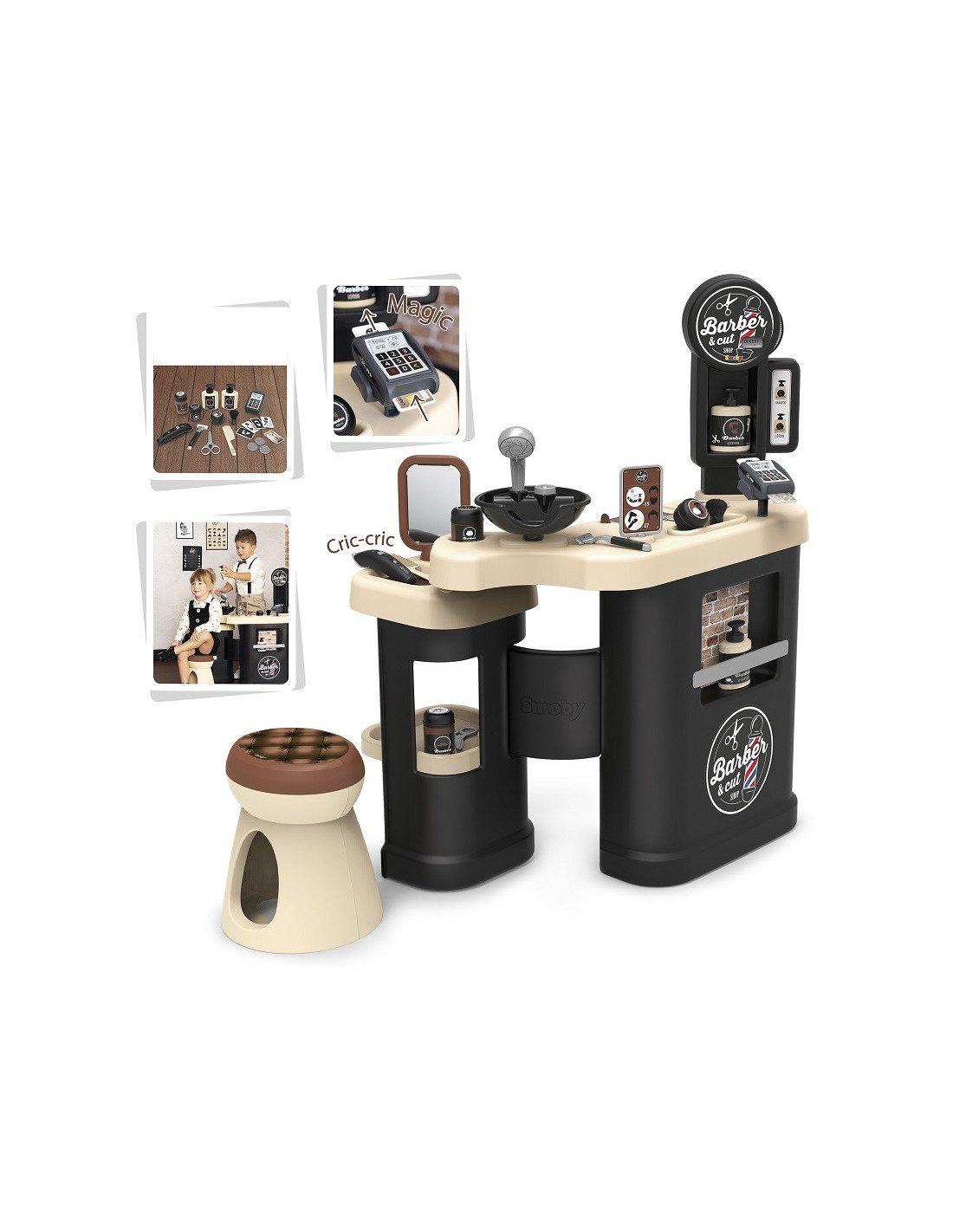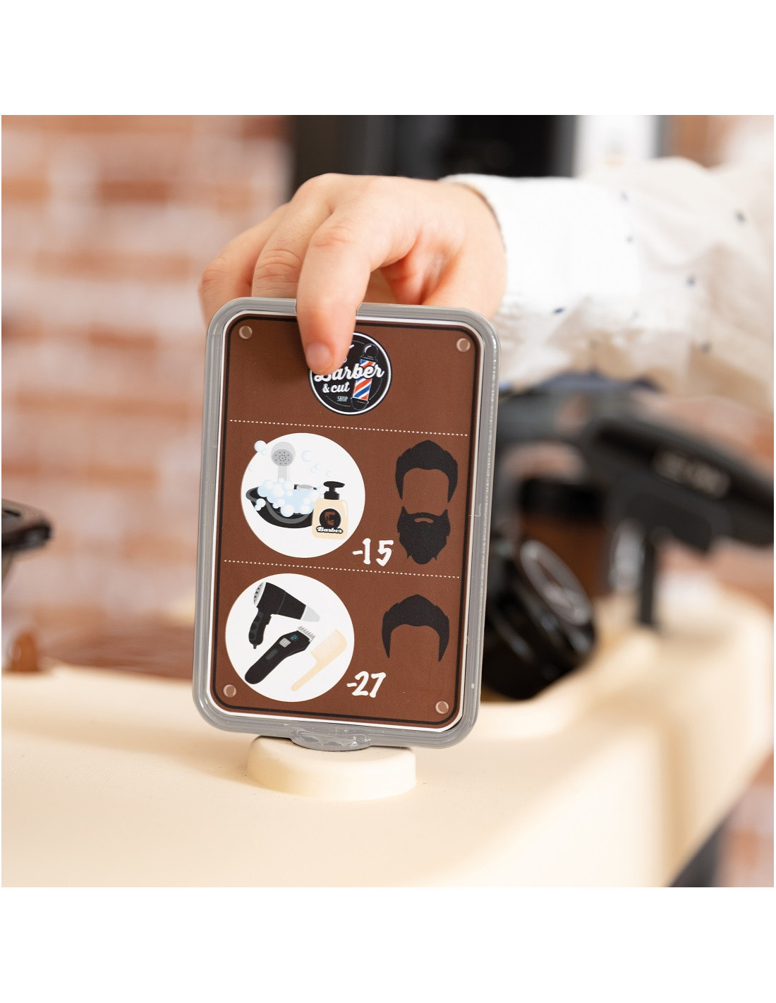 Dzieci uwielbiają obserwować i naśladować dorosłych. Zestaw Centrum Barbera z serii My Beauty łączy w sobie 3 strefy - obszar stylizacji włosów i brody, zakątek pielęgnacji z myjką i prysznicem oraz strefę płacenia terminalem płatniczym. Zestaw zawiera 19 akcesoriów, niezbędnych do zabawy.