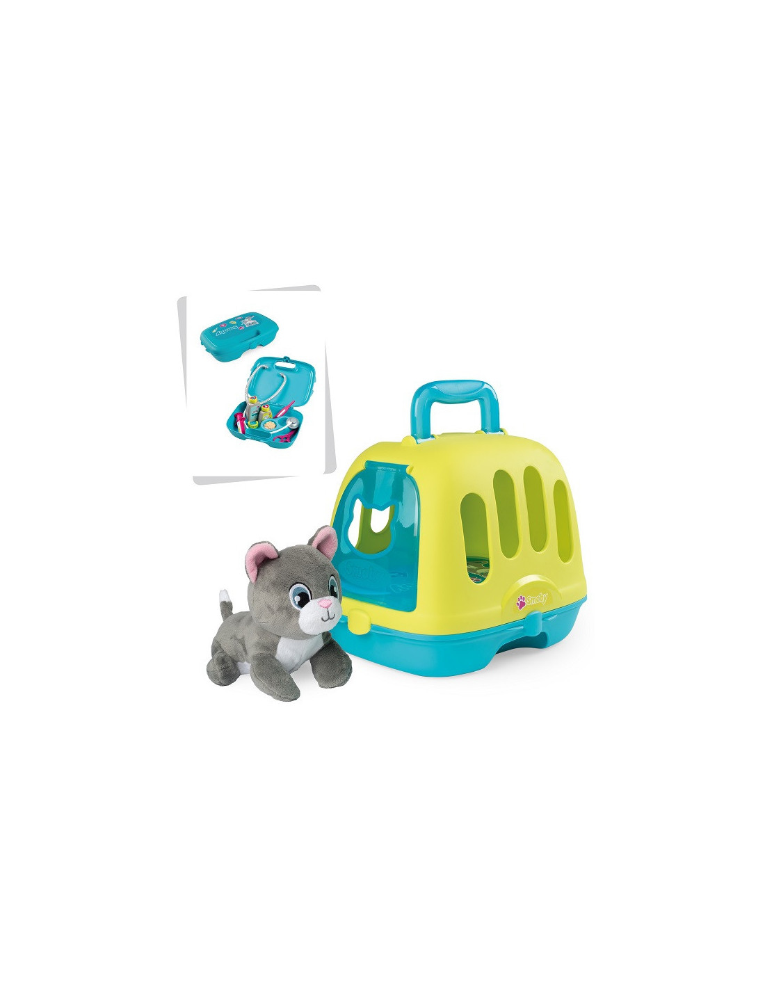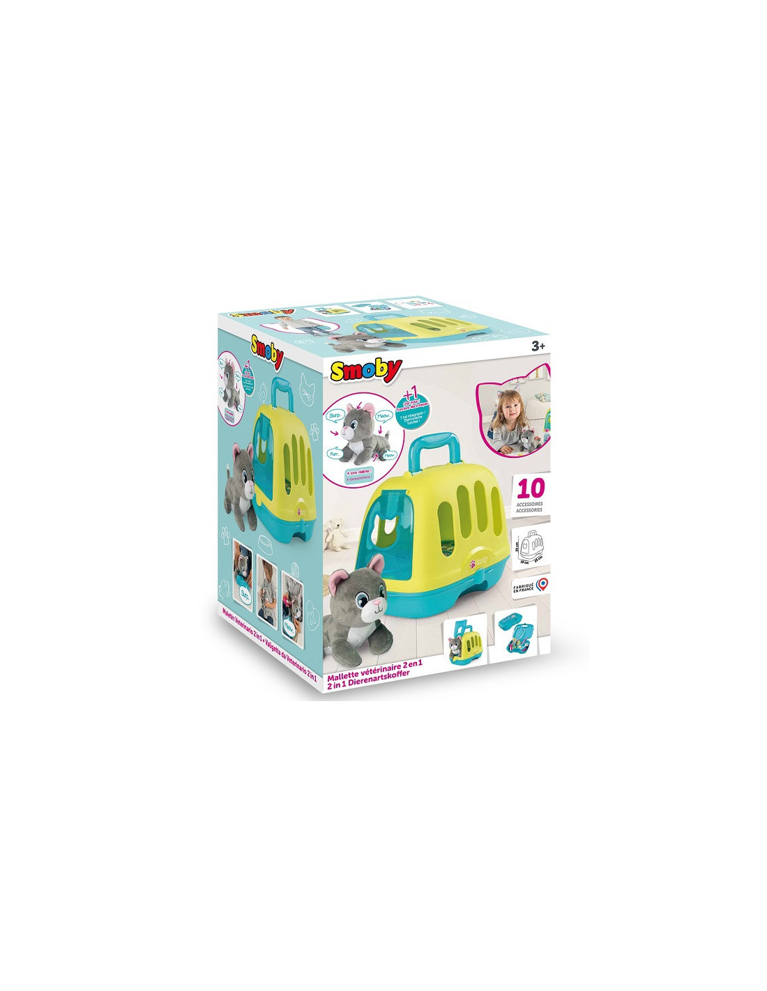 Smoby Kontener z interaktywnym kotkiem pozwoli dziecku wcielić się w rolę lekarza weterynarii. Ten zestaw sprzyja rozwojowi wyobraźni oraz uczy dziecko opiekuńczości. Zestaw składa się z kontenera dla kota i walizki weterynarza w jednym oraz pluszowego kotka wydającego dźwięki.