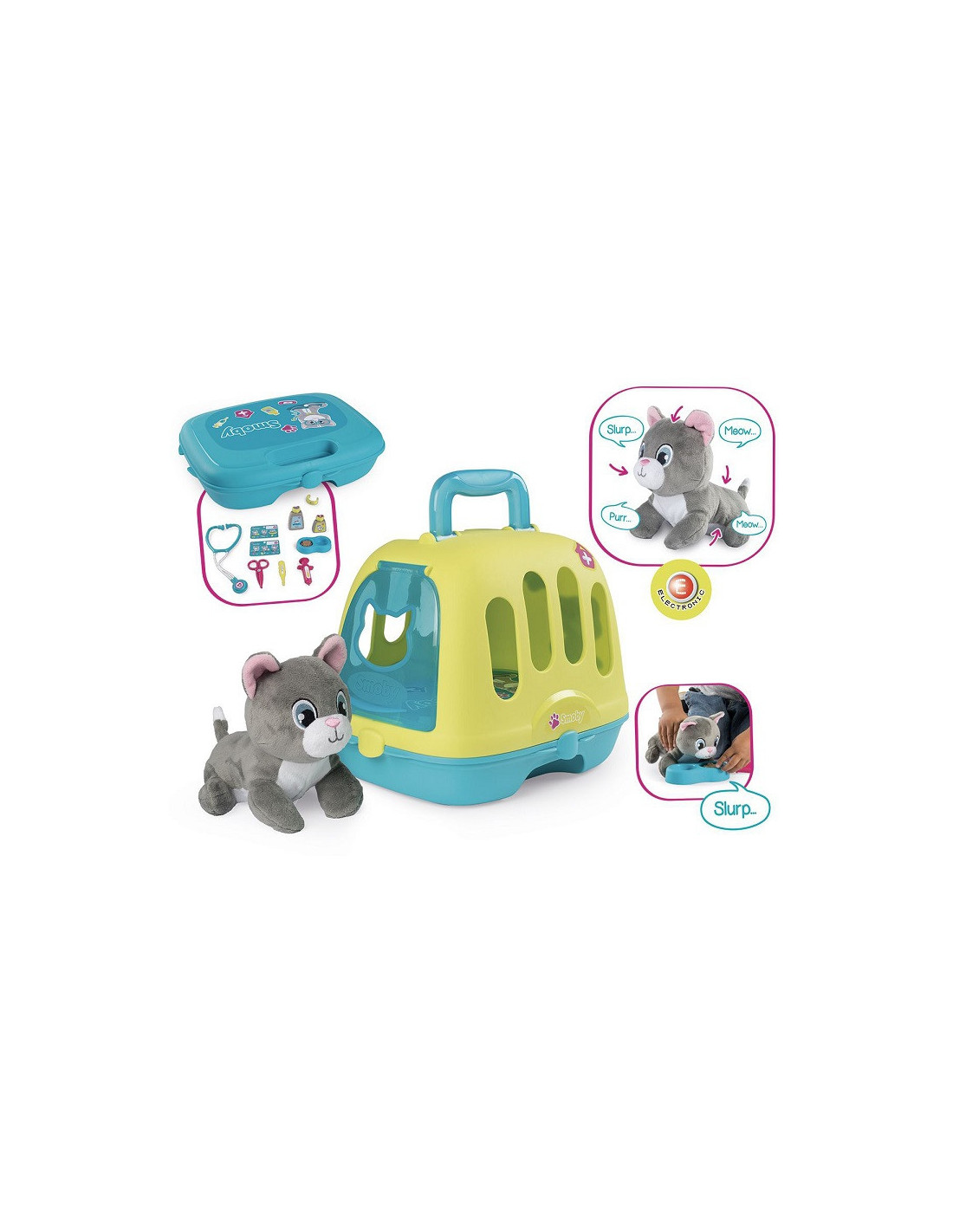 SMOBY Zestaw 2w1 Kontener dla Kota + Interaktywny Miauczący Kot