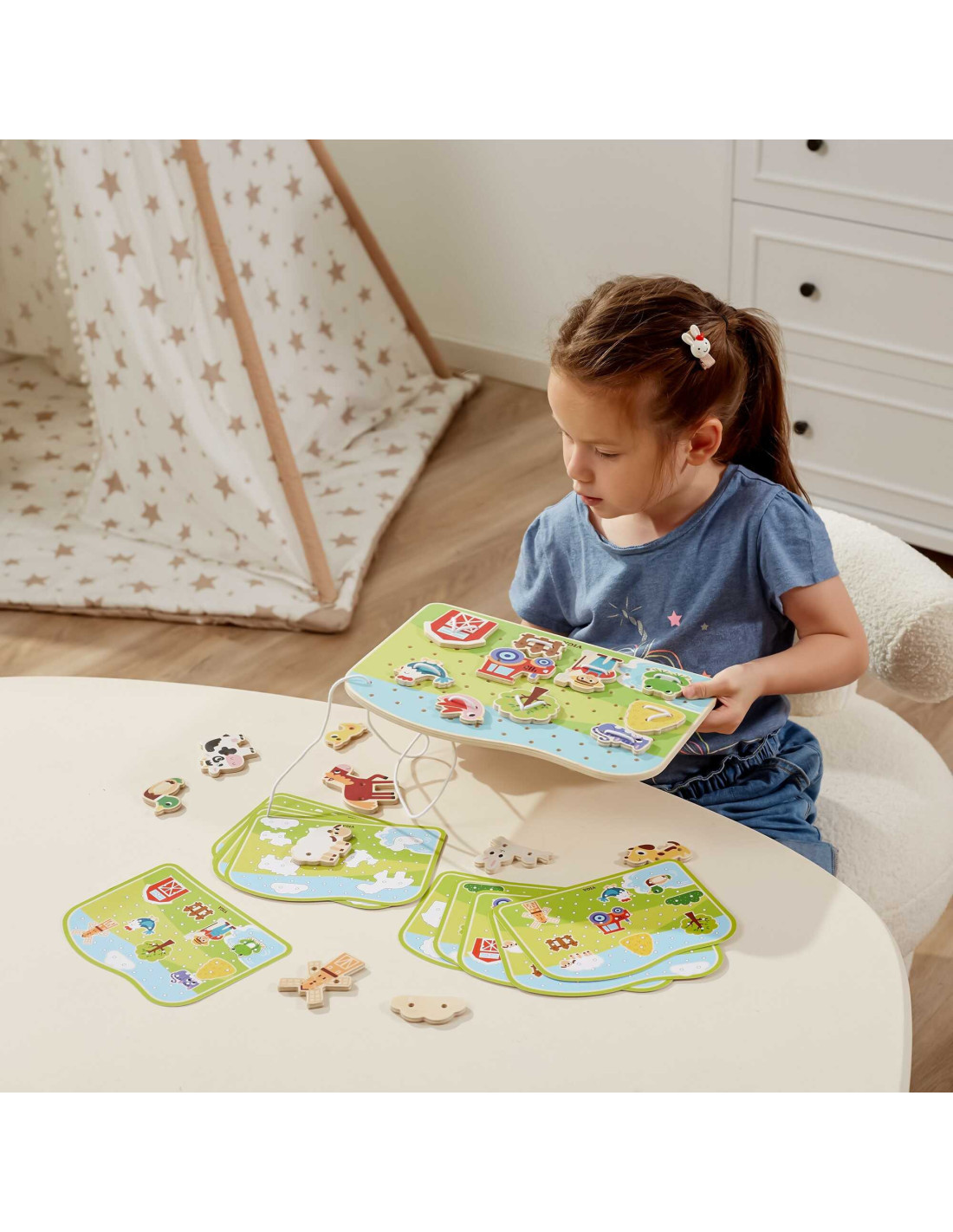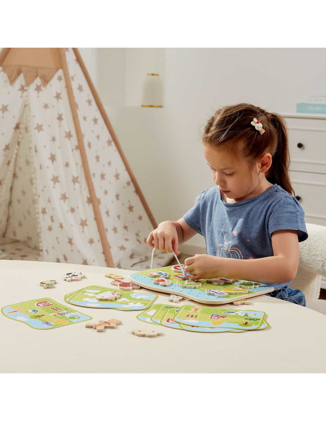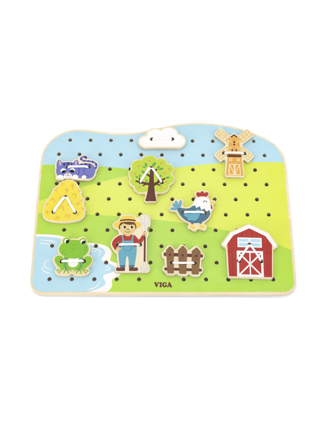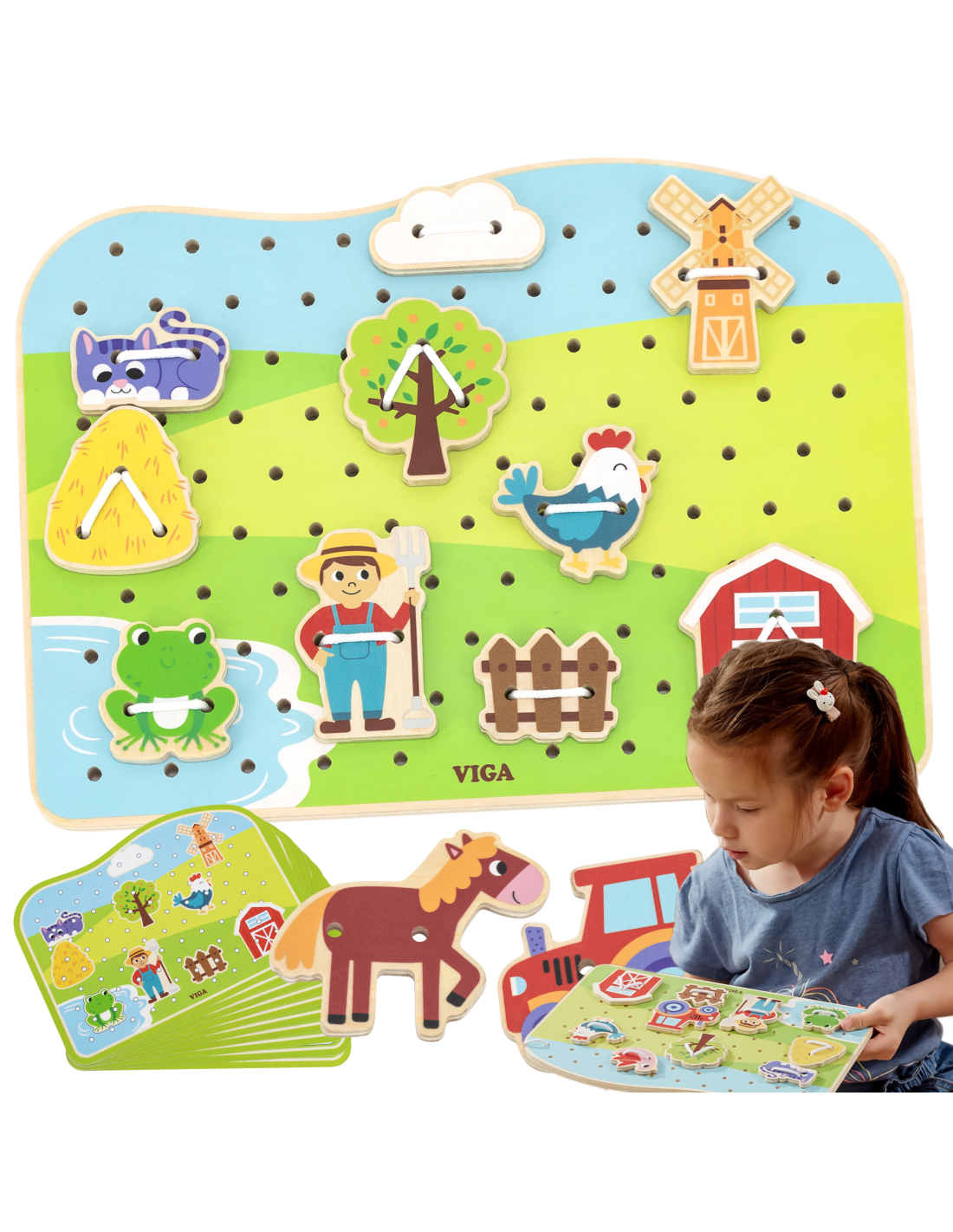 VIGA Drewniana Sznurowanka Przeplatanka Zwierzęta na Farmie Montessori