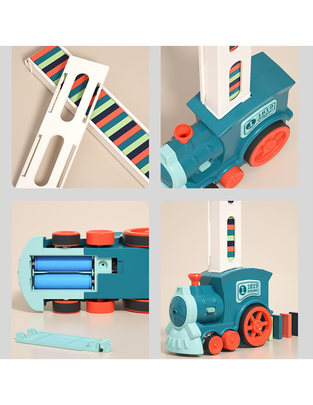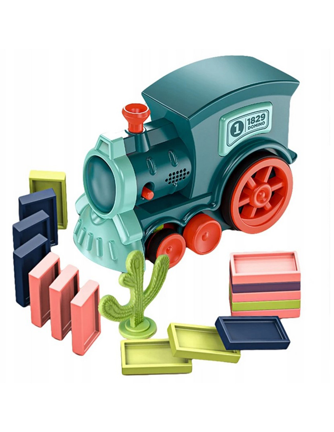 Elektryczna Ciuchcia Lokomotywa do Klocków Domino od marki WOOPIE zachwyci każde dziecko. Pociąg posiada fantastyczną funkcję. Wystarczy naładować magazynek klockami, umieścić w ciuchci, wcisnąć guzik i pociąg automatycznie stawia za sobą klocki w układzie domino. Guzikiem można zarówno włączyć i wyłączyć ciuchcie, a kolorowym kominem skręcać. Podczas jazdy zabawka świeci oraz wydaje dźwięki naśladujące prawdziwy pociąg. Młodsze dzieci lubią natychmiast przewracać klocki, natomiast starsze zaciekawi przewracanie klocków w całym efekcie domina. Zestaw zawiera aż 63 elementy, w tym komin, który ma funkcję zmiany kierunku upadania klocków oraz tworzenia bardziej skomplikowanych tras. Zabawka nie tylko dostarczy świetnej zabawy, ale również uczy. Rozwija w dziecku związek przyczynowo-skutkowy, zdolności manualne oraz wspomaga koncentracje, wyobraźnie i kreatywność.