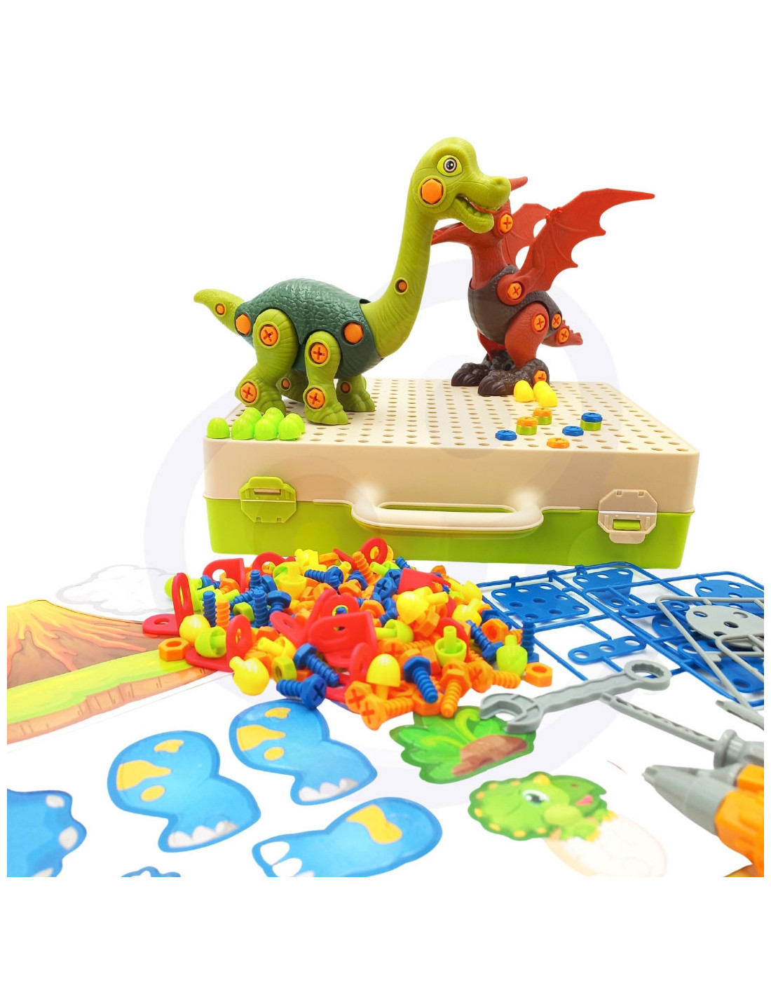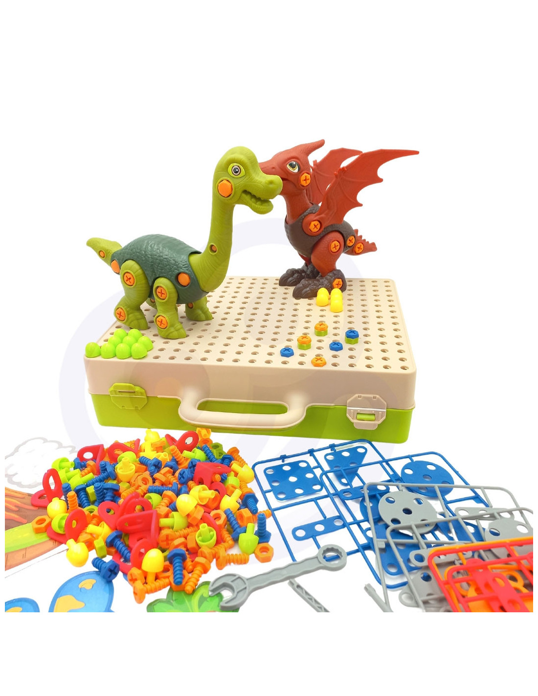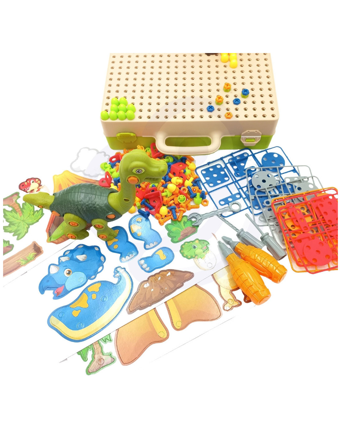 Zestaw konstrukcyjny w Walizce od znanej marki WOOPIE to idealna zabawka dla miłośników majsterkowania, który wprowadzi Twoje dziecko do czasów prehistorii. Dziecko może wykorzystać w pełni swoja wyobraźnię i kreatywność, ponieważ oprócz skręcenia dinozaurów, można ułożyć dowolna scenerie i dowolny obrazek na planszy. Plansze można złożyć w walizkę i przechowywać wszystkie elementy w środku. W zestawie znajdują się takie elementy jak śrubki, obrazki, zakrętki, śrubokręty, klucze i wiele innych. Do wszystkiego dołączona jest instrukcja jak złożyć dinozaury i przykłady wzorów do układania. Zabawka rozwinie zdolności manualne tzw "małą motorykę" - ruch rączek. Dinozaur to ponadczasowa tematyka uwielbiana przez wszystkie dzieci. Dzięki zabawie prehistorycznym stworzeniem maluch poszerzy zakres swojej wyobraźni i kreatywności.