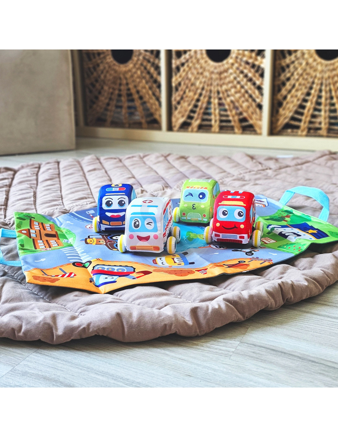 WOOPIE BABY Pluszowe Nakręcane Autka Zestaw Mata Drogowa 5 el.