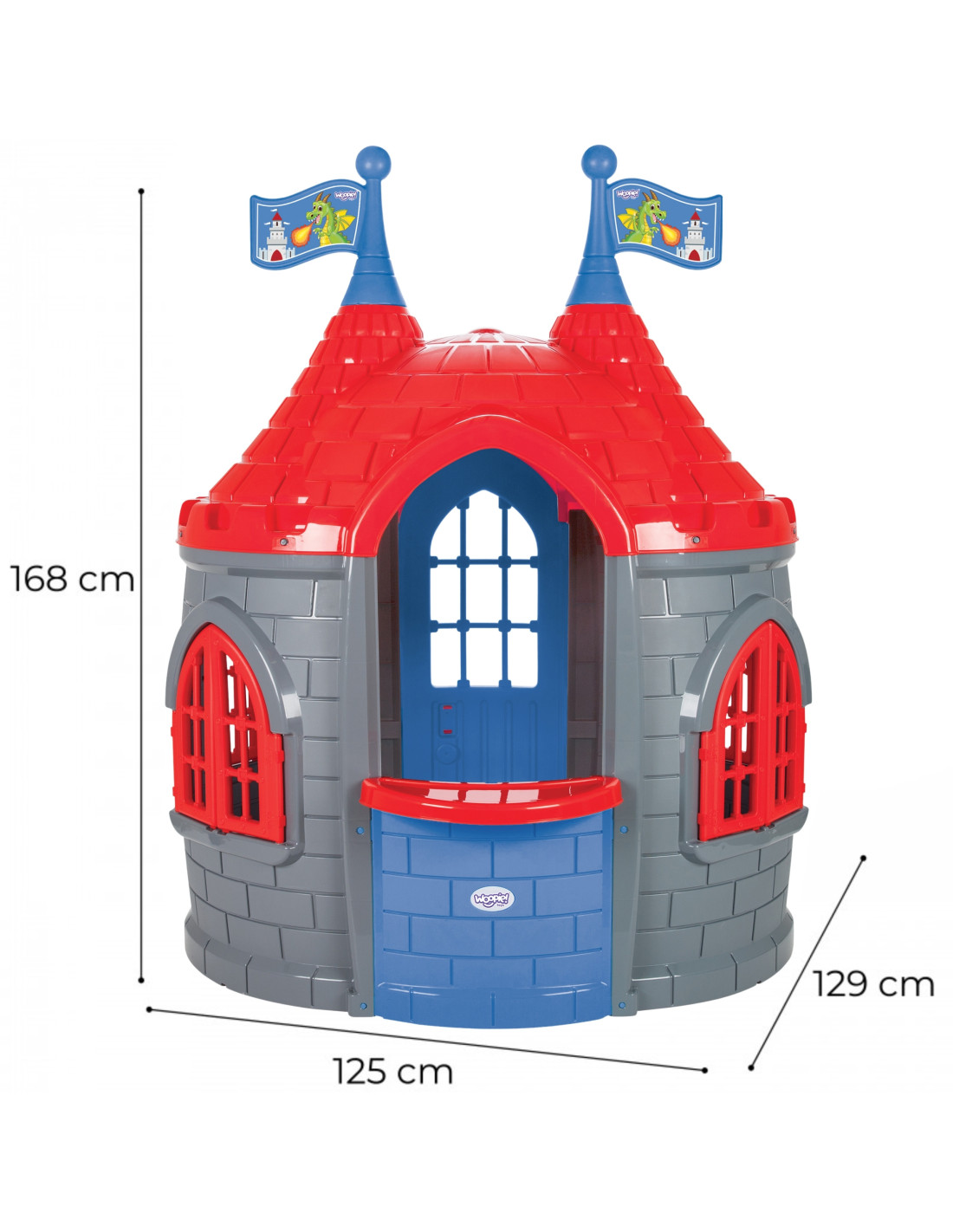 Zamek od marki WOOPIE w kolorze szarym jest super twierdzą dla Twojego dziecka i jego przyjaciół! Do domku można wejść za pomocą starodawnych średniowiecznych drzwi. Pałac posiada parę okien otwierających się na roścież oraz taras widokowy. Zamek widoczny jest z daleka, dzięki kolorowym dachom oraz parą chorągiewek. Twierdza jest łatwa do złożenia oraz posiada wiele miejsca na zabawę bez końca! Plac zabaw pozwoli dzieciom poczuć się jak rycerz i księżniczka w prawdziwym zamku!