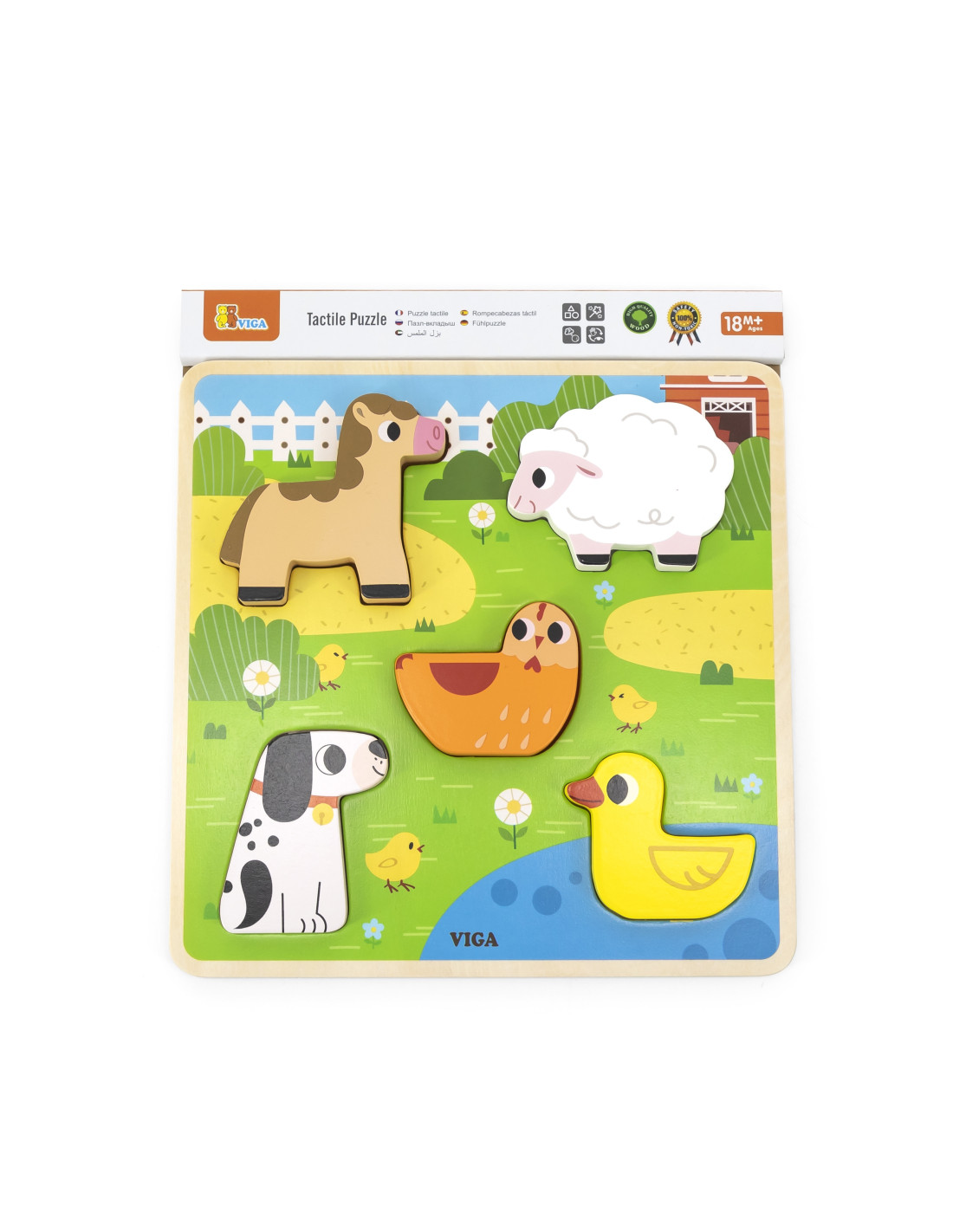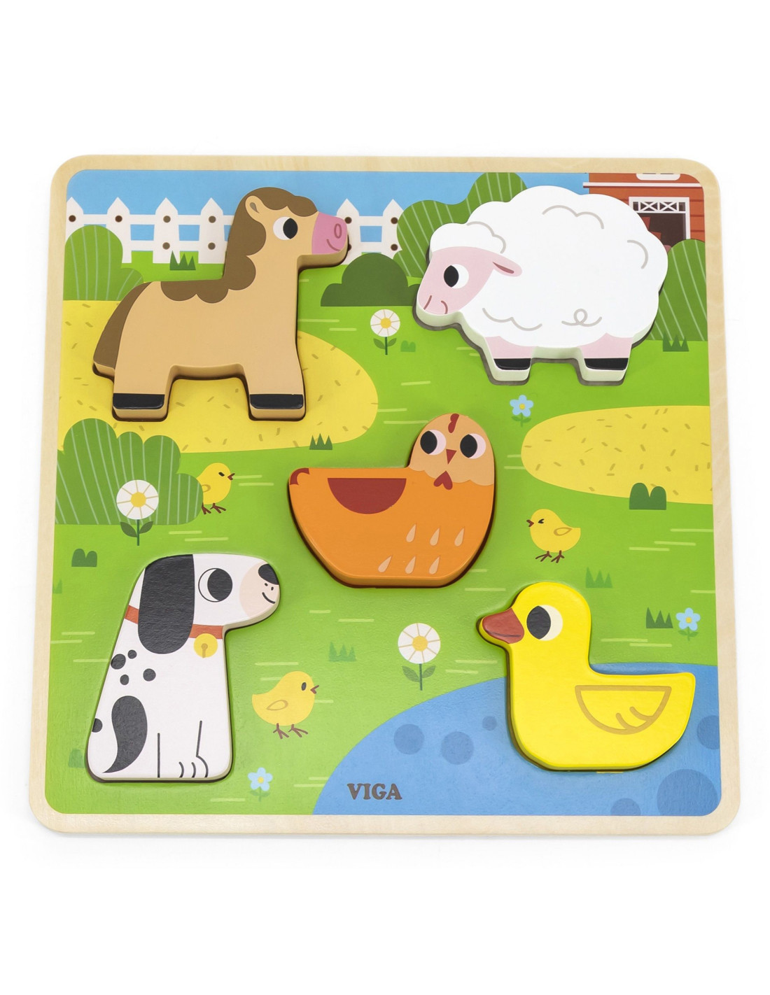 VIGA Drewniana Układanka Puzzle Zwierzątka Farma do Dopasowania