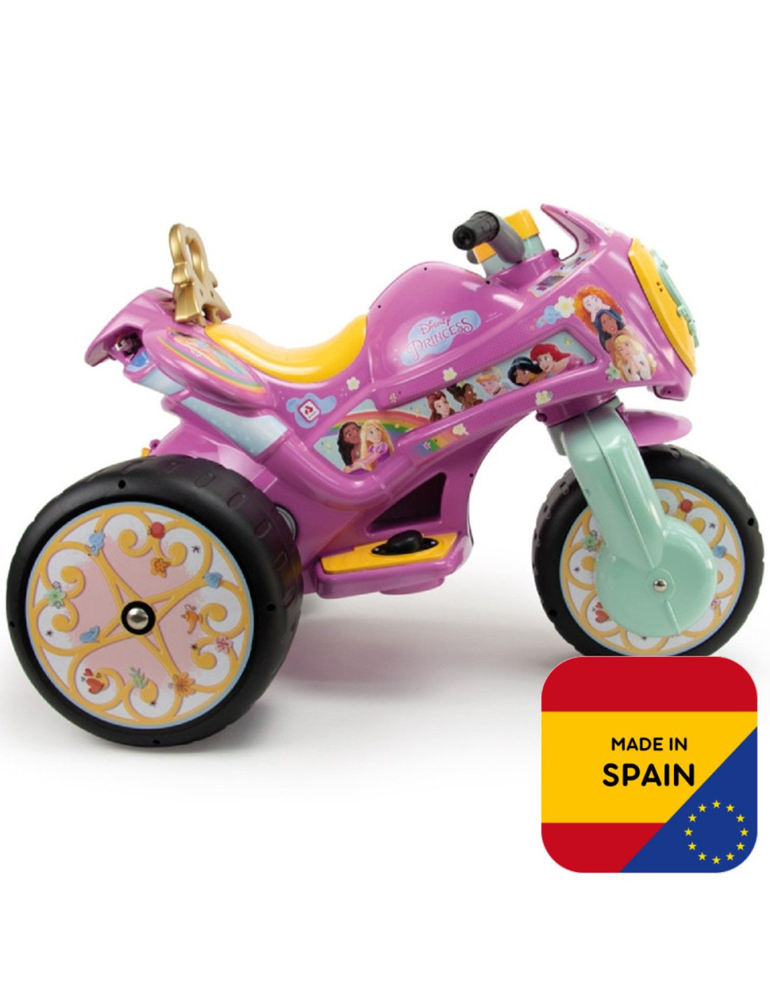 Trzykołowiec Księżniczki Disneya 6V to rewelacyjny produkt od firmy Injusa - ergonomiczny, solidny i efektowny jeździk na licencji Disney Princess. Jeździk przeznaczony jest dla dzieci, które postawiły już swoje pierwsze kroki. Zbudowany tak, aby mogły wypróbować i rozwijać kolejne zdolności - wsiadanie, zsiadanie, odpychanie i kierowanie. Wykonany z trwałego tworzywa, dzięki czemu świetnie sprawdzi się w przedszkolach. Trójkołowiec posiada duże, szerokie koła co zapewnia bezpieczeństwo, stabilność i łatwe utrzymanie równowagi.