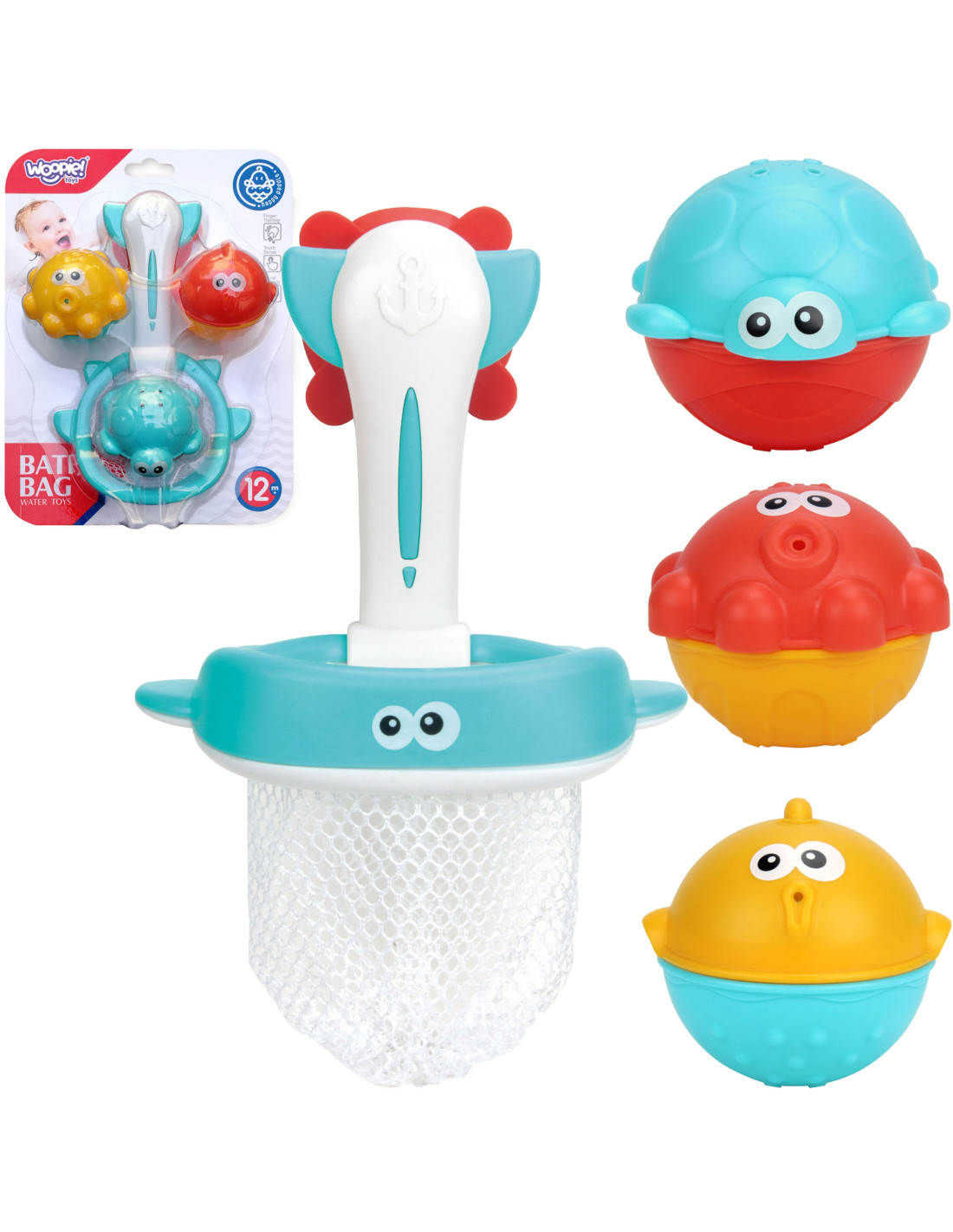 Zestaw zabawek wodnych od marki WOOPIE będzie super uzupełnieniem kąpieli dla Twojego dziecka. Dziecko podczas zabawy może łowić piłeczki do siatki lub je do niej wrzucać. Zestaw nie tylko umili czas podczas kąpieli, ale również rozwinie zdolności manualne u dziecka oraz rozwinie świadomość otaczającego go świata, a przede wszystkim pozwoli skoncentrować dziecko i zająć podczas mycia.