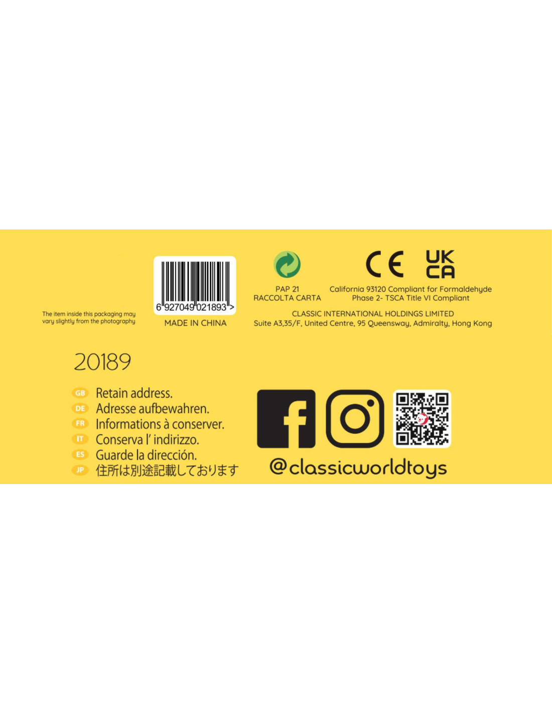 - Classic Toys (Ningbo) Co., Ltd. | No.8 Xinrui Road, Wuxiang Town Industry Park, Yinzhou District, Ningbo, Zhejiang, China | andy@classicntoys.com