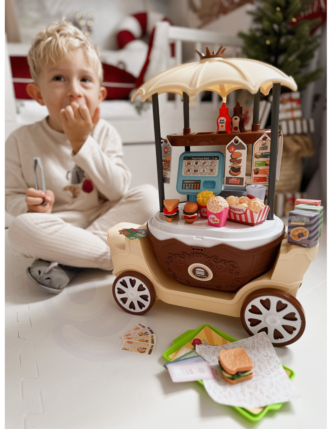 Dziecko dzięki temu zestawowi może uruchomić swój własny punkt gastronomiczny i serwować pyszne potrawy.