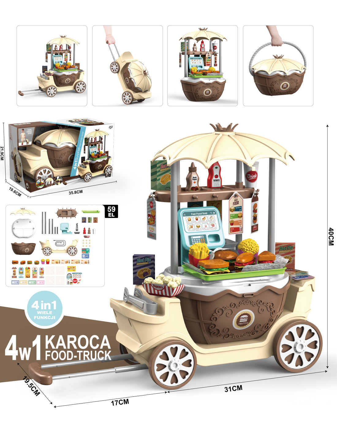 Mega Sklep Fast-Food w Walizce 4w1 od marki WOOPIE to nieograniczona okazja do zabawy w małego przedsiębiorcę.