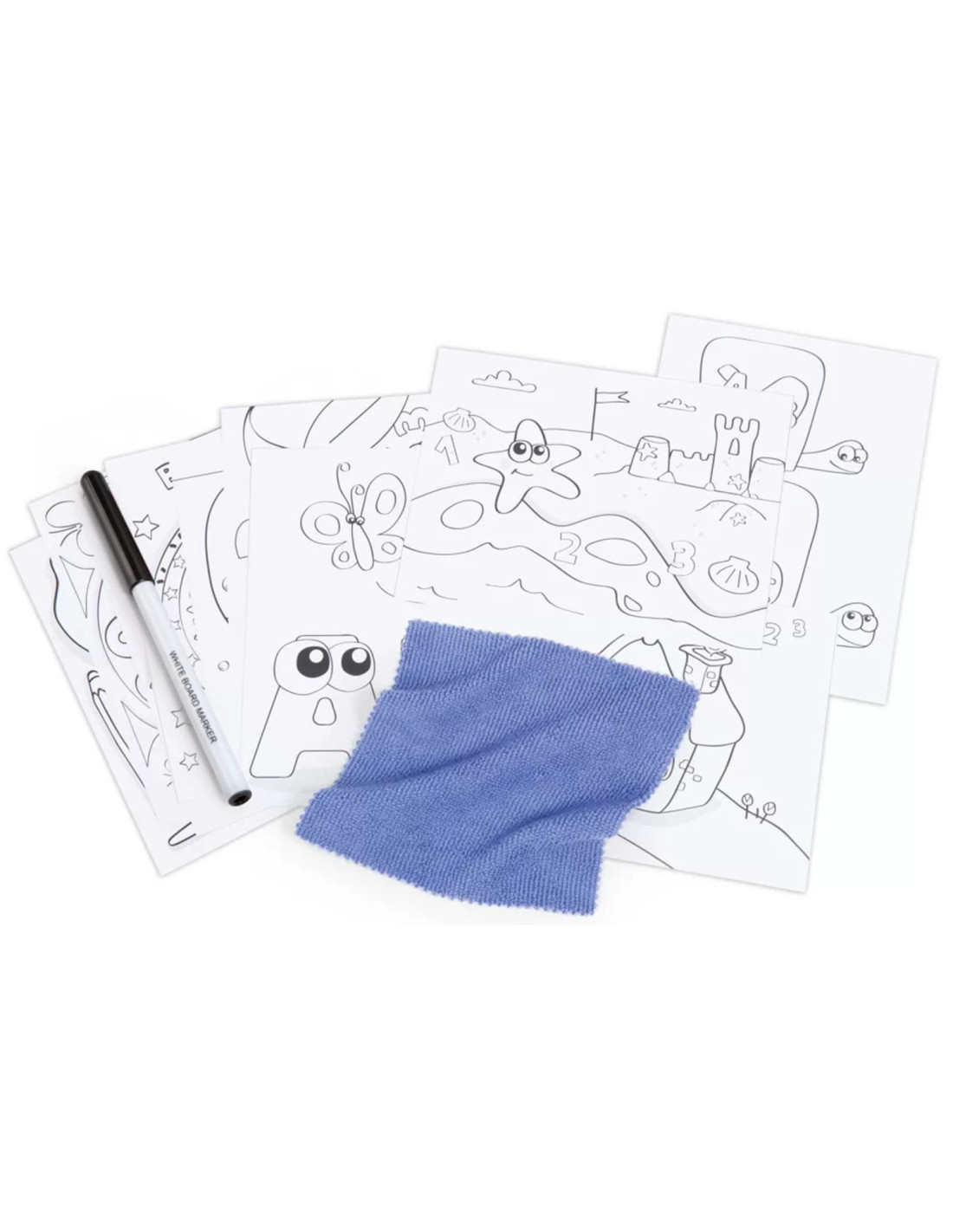 - - 12 akcesoriów w tym kolorowanki, flamaster i szmatka do czyszczenia tablicy