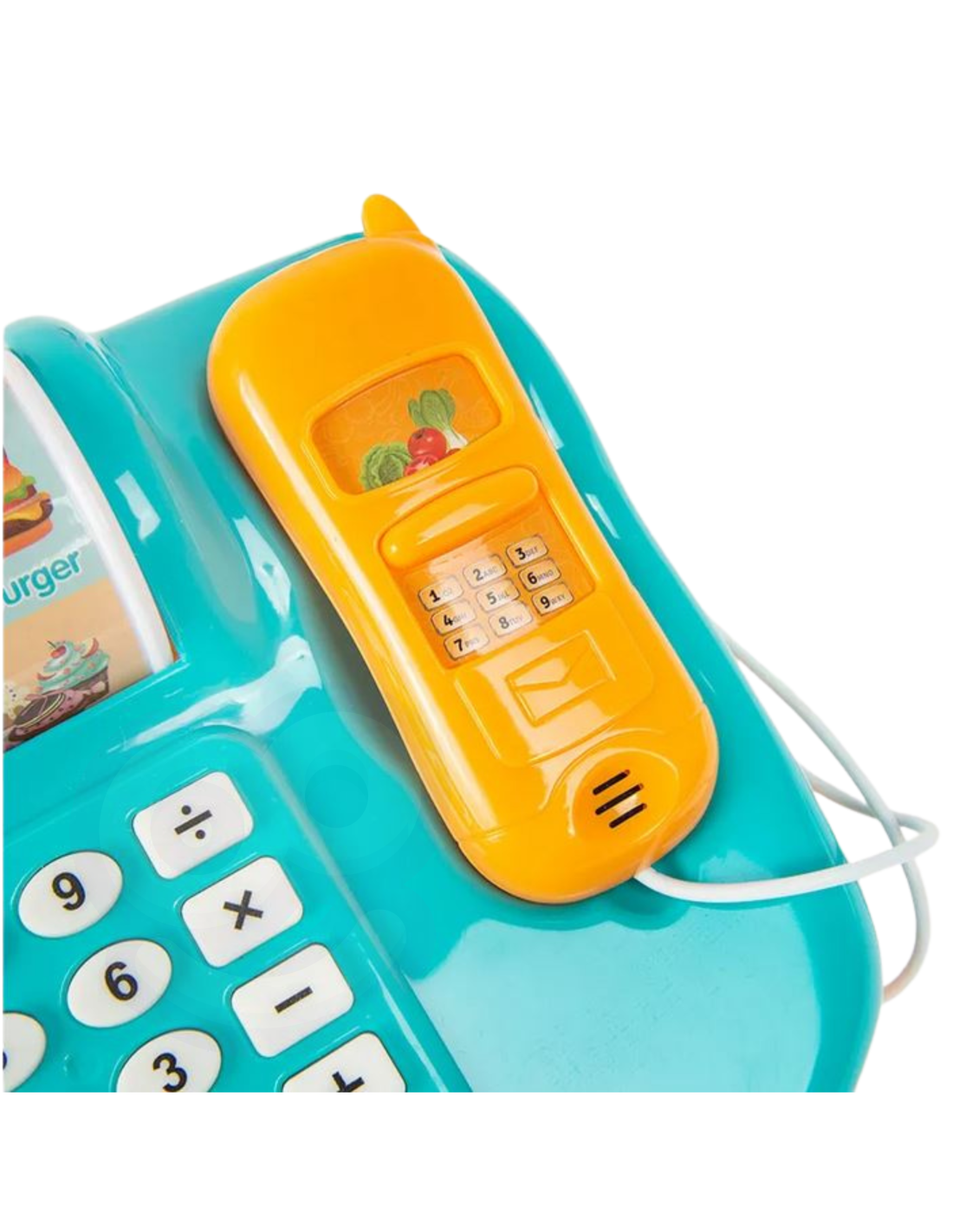 - - Kasę włączamy za pomocą guzika "on/off" w której mamy funkcję kalkulatora a każda wciśnięta liczba wydaje dźwięk