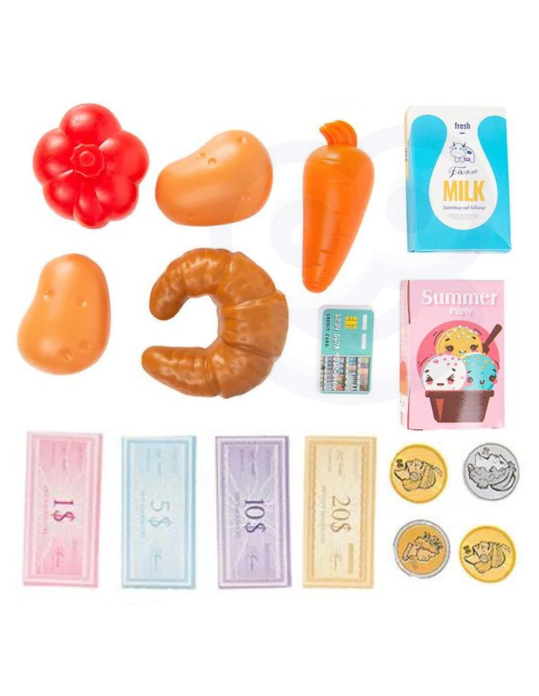 - - Dziecko może bawić się w sprzedawce dzięki zawartym przedmiotom takim jak kartonowe mleko, lody oraz 5 warzyw w pojemniku