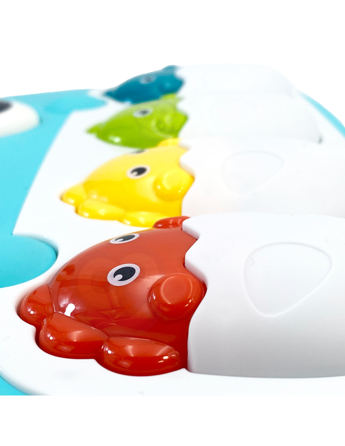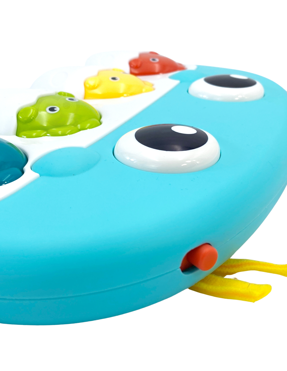 Dino Pianino od marki WOOPIE to kolorowa i interaktywna zabawka muzyczna dla dzieci, która wygląda jak uroczy, uśmiechnięty dinozaur z oczkami i ozdobami na górze. Ma cztery klawisze w różnych kolorach, z których każdy przypomina mniejszą wersję dinusia. Zabawka ma trzy tryby dźwiękowe, które można zmieniać wciskając oczka: dźwięki pianina, krótkie dźwięki i dłuższe melodie. Każdy klawisz świeci się podczas naciskania, przyciągając uwagę dziecka i rozwijając jego zmysły. Zabawka ma również głośnik, włącznik/wyłącznik i dwustopniową regulację głośności, co zapewnia komfort rodzicom i dziecku. Pianinko Zabawka pomaga dziecku ćwiczyć zdolności motoryczne, poznawać świat dźwięków i świateł, oraz bawić się kreatywnie.