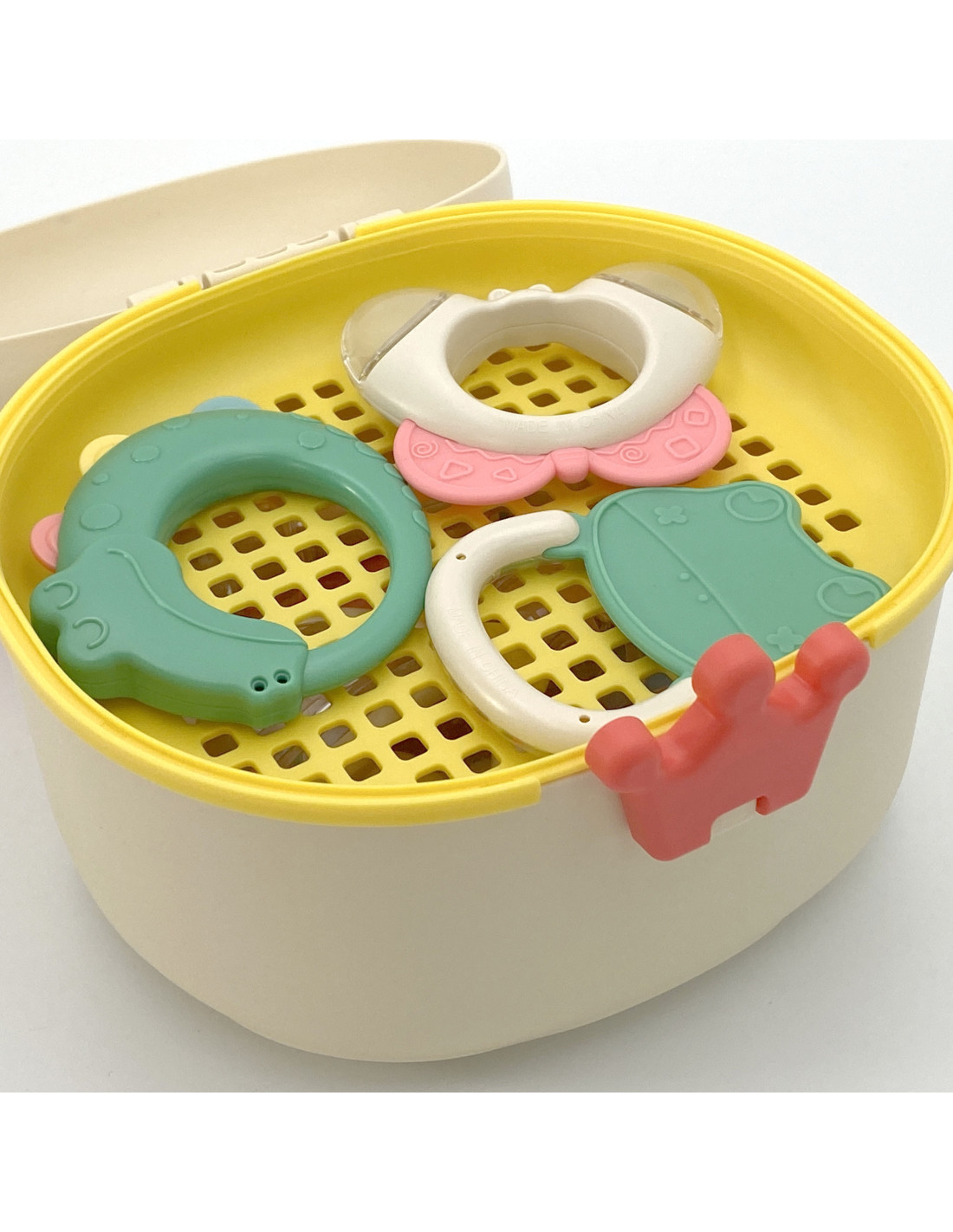 - - bębenkowy pojemnik do przechowywania, w którym możemy suszyć zabawki po wyparzeniu,