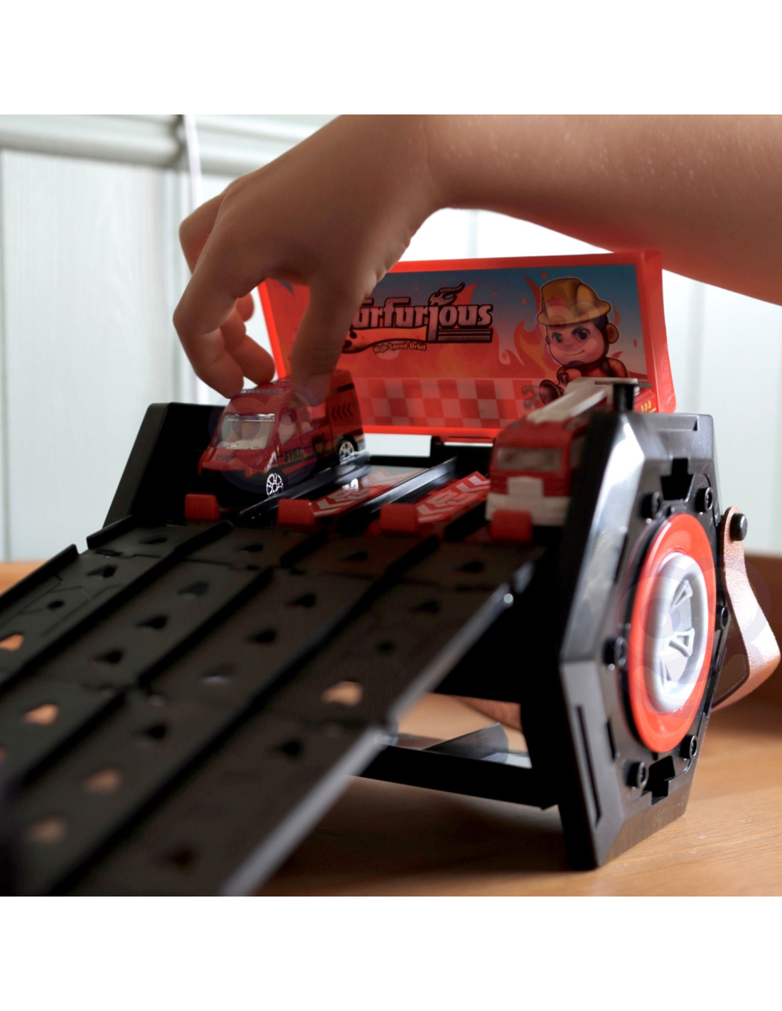 Tor zjazdowy Surfurious od marki WOOPIE to idealna propozycja dla małych miłośników wyścigów. Zbuduj własny tor i ciesz się emocjonującymi zjazdami czterech kolorowych aut. Wbudowany głośnik i efekty świetlne sprawiają, że każdy zjazd staje się prawdziwym wydarzeniem. Tor został wykonany z wysokiej jakości materiałów, bezpiecznych dla dzieci.