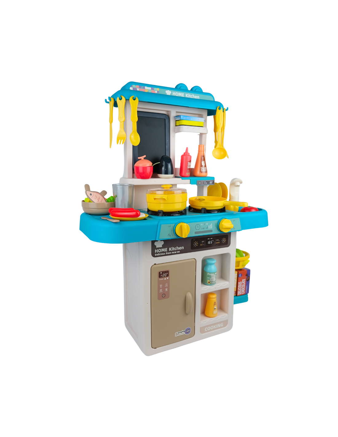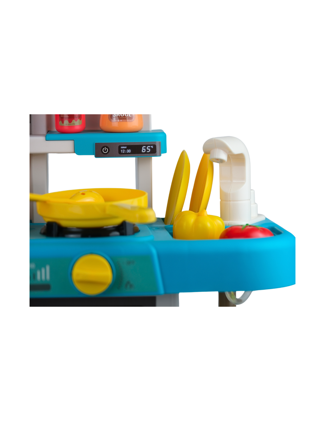 Rewelacyjna Kuchenka dla dzieci od marki WOOPIE to świetna i kreatywna zabawa dla twojego dziecka. Dzięki super odwzorowanym detalom, twoje dziecko poczuje się jakby naprawdę gotowało! Nasza kuchnia została wyposażona w funkcjonalny kran, z którego może lecieć prawdziwa woda. Dzięki obiegowi zamkniętemu, woda wróci do zlewu, umożliwiając dziecku zabawę w mycie warzyw, owoców, naczyń, czy nawet małych rączek. Z dwoma pokrętłami sterującymi palnikami, nasza kuchnia ożywa świetlnie i dźwiękowo. Pierwsze pokrętło włącza pierwszy palnik, rozbłyskując światłem, a drugie pokrętło aktywuje drugi palnik, towarzysząc temu migoczącym światłom i dźwiękom smażenia. Dodatkowo z pokrywki garnka wydobywa się para wodna, jak podczas prawdziwego gotowania! To nie tylko zabawka – to interaktywne narzędzie edukacyjne, które pozytywnie wpływa na rozwój wyobraźni i pobudza kreatywność dziecka.