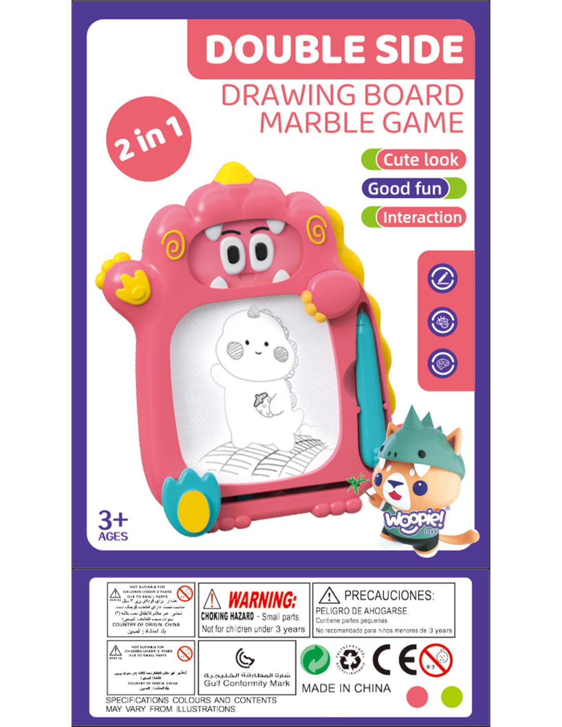 Znikopis Tablica 2w1 od marki WOOPIE to wspaniała zabawka, która może dostarczyć Twojemu dziecku wiele radości i kreatywnej zabawy na długi czas! Tablica zachęca do pisania i rysowania. Rysowanie pozwala skoncentrować, wyciszyć i uspokoić Twoje dziecko. Znikopis pozwala na tworzenie nieskończonej ilości obrazków – wystarczy przejechać specjalnym suwakiem, a rysunek zniknie i można zaczynać od nowa! Zestaw dodatkowo zawiera wygodny magiczny długopis oraz 2 stempelki, które urozmaicą dzieło. Tablica posiada wygodny uchwyt, dzięki czemu dziecko może zabrać ją wszędzie.