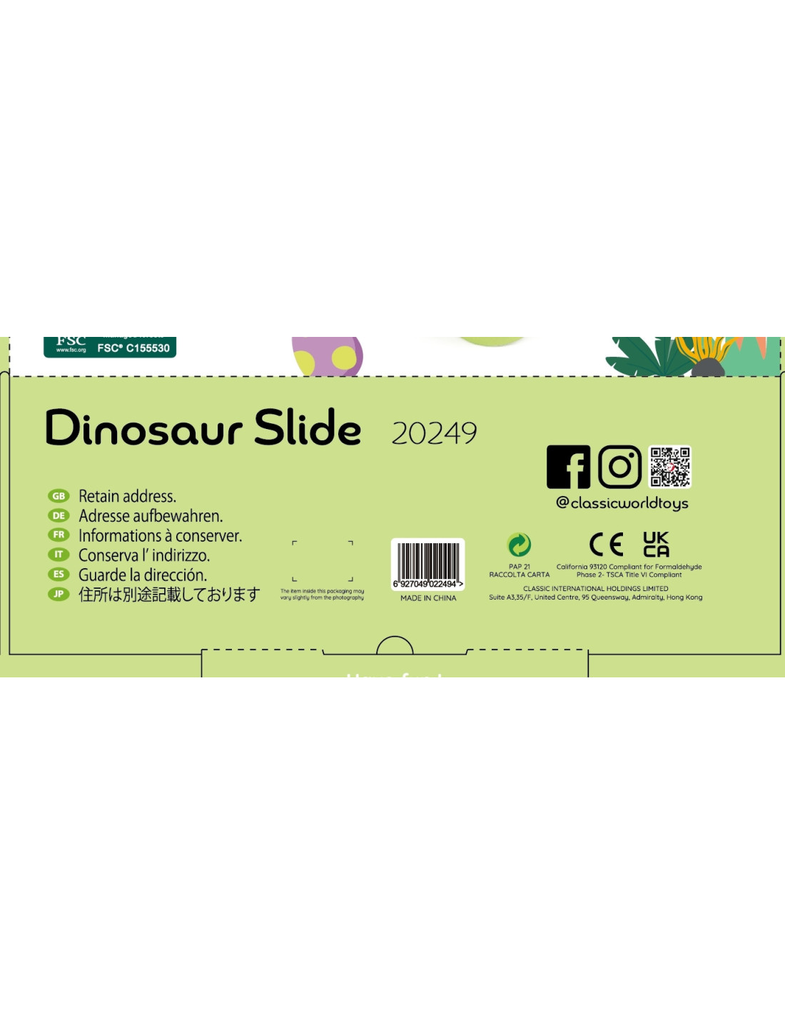 CLASSIC WORLD Kolorowa Zjeżdżalnia Tor Dinozaur 5 el.