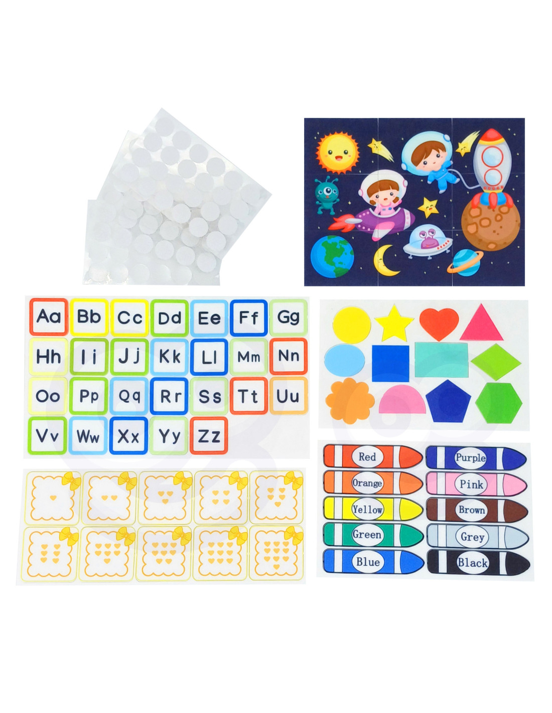 - - Wszystkie elementy są opisane, co ułatwia dzieciom rozpoznawanie kolorów, kształtów oraz dni tygodnia, wspierając ich autonomię i niezależność w nauce.