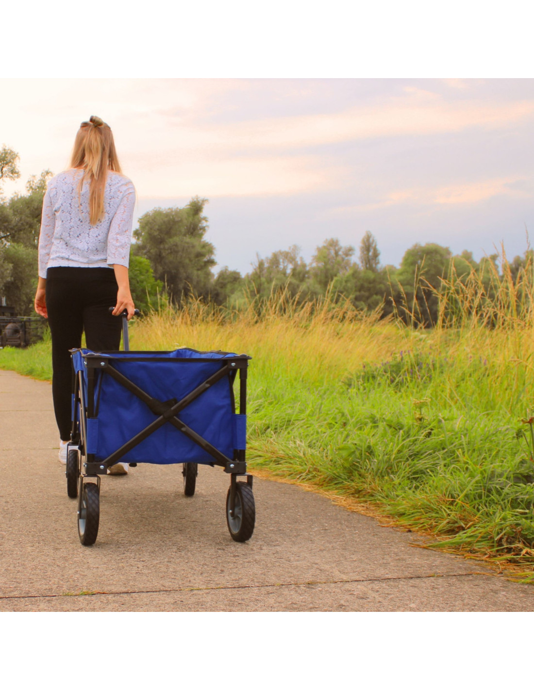 ✔ Jeśli potrzebujesz praktycznego rozwiązania do transportu sprzętu, zakupów czy bagażu na plażę, niebieski wózek jest idealnym wyborem.