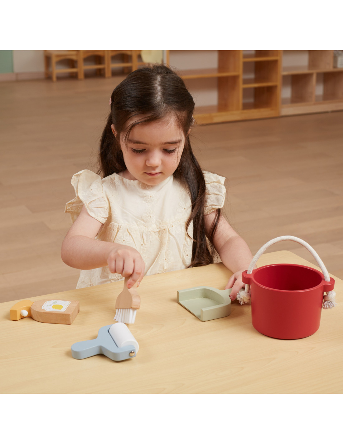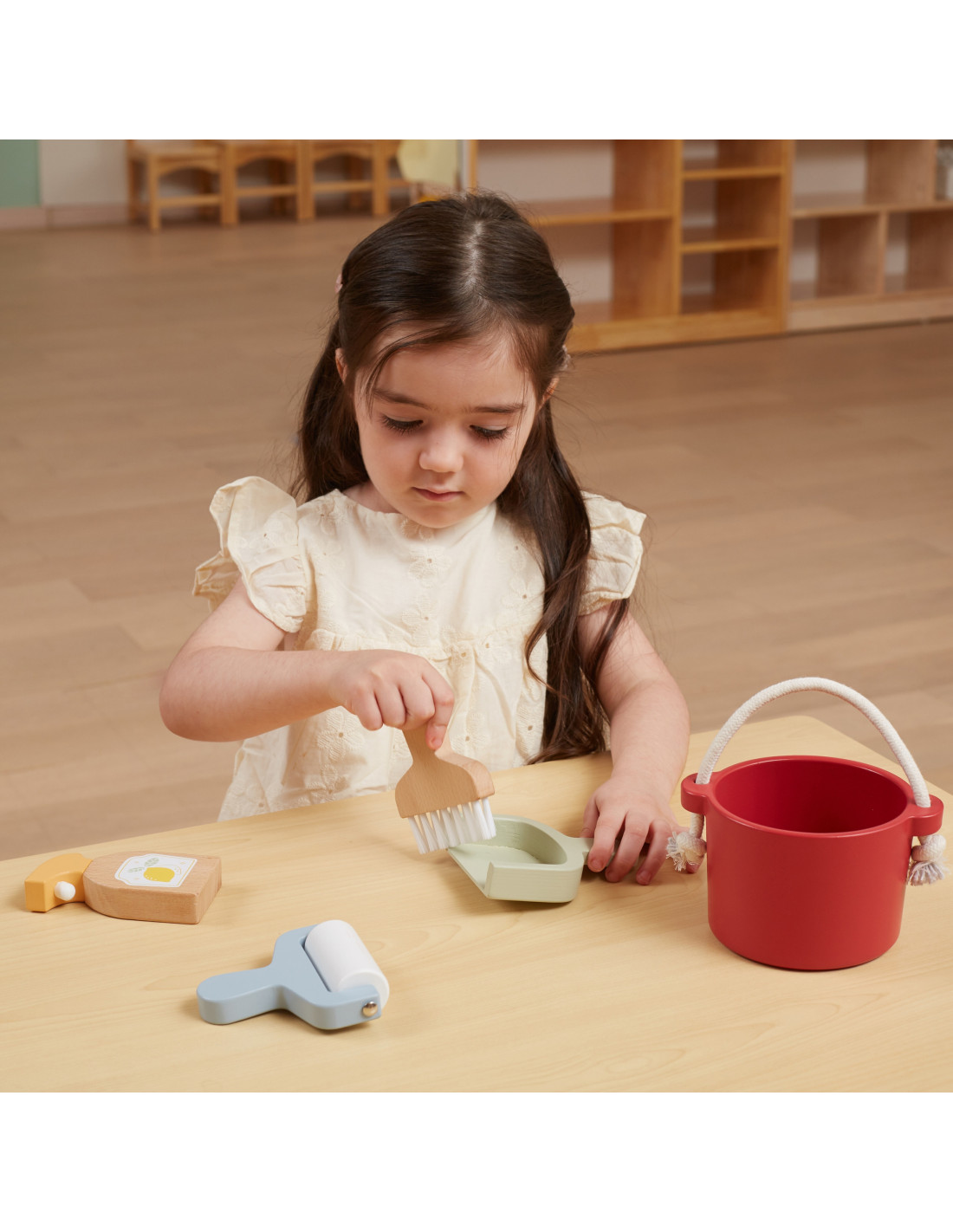 Rolka do ubrań i powierzchni: Dziecko może udawać, że czyści dywan lub wykładzinę, przesuwając wałek wzdłuż powierzchni.