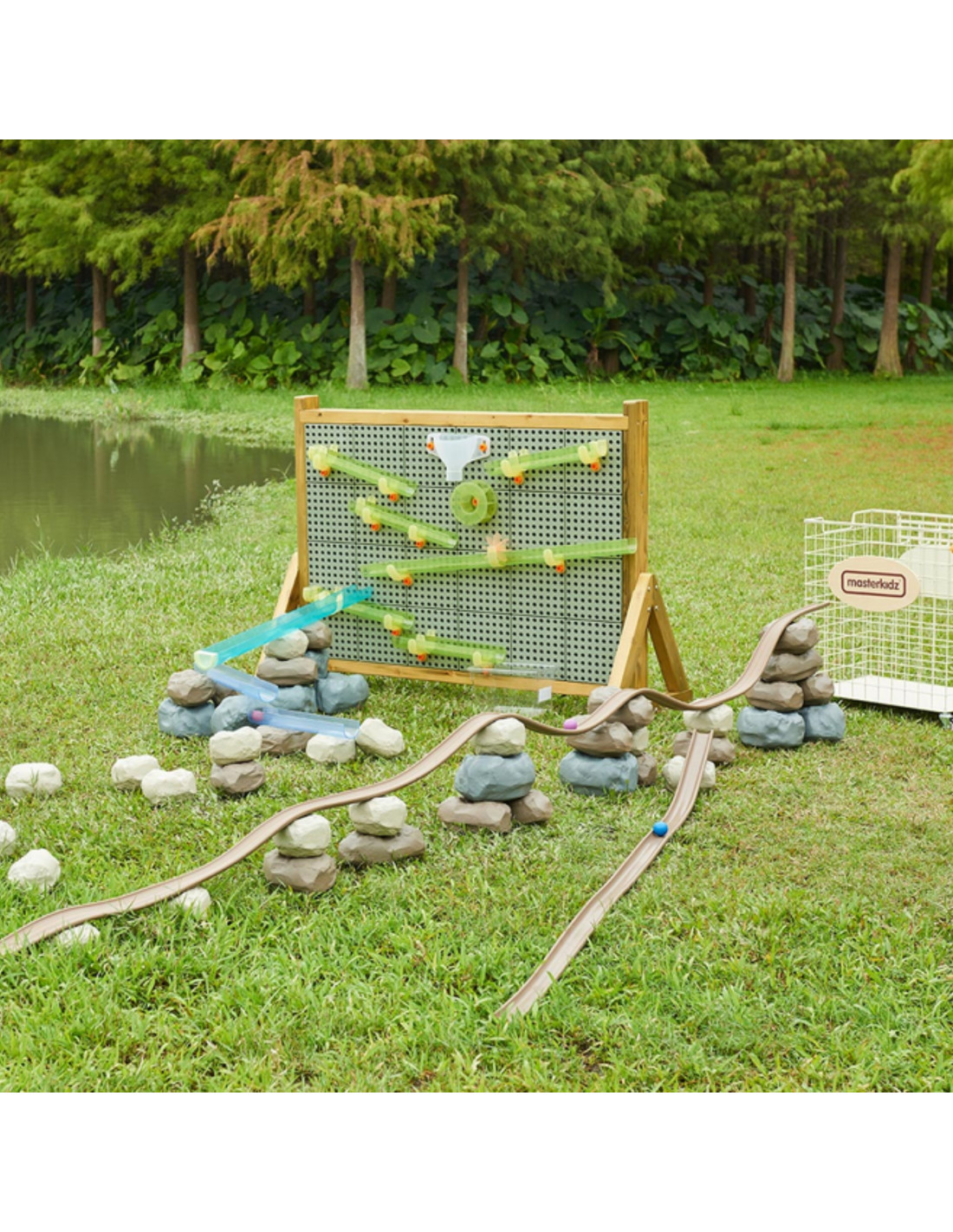 MASTERKIDZ Elastyczny Tor Kulkowy + Gumowe Kamienie Konstrukcyjne 98 el.