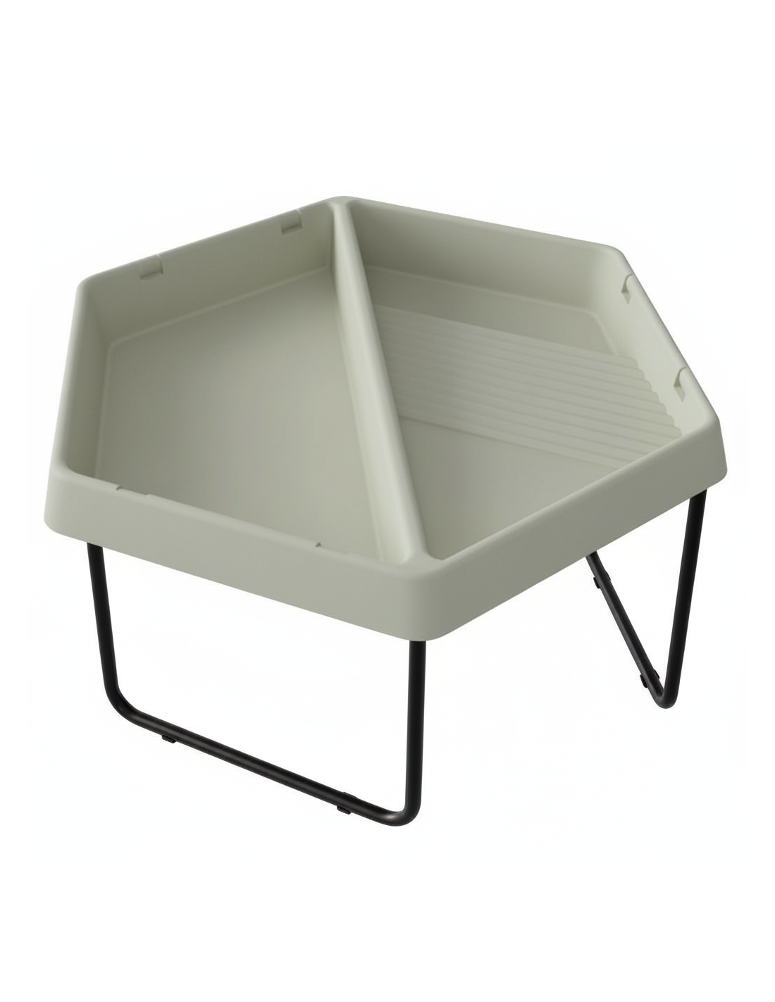• - Sześciokątna taca podzielona na 2 oddzielne komory – idealna do prowadzenia dwóch aktywności w tym samym czasie lub pracy z trzema różnymi substancjami.
