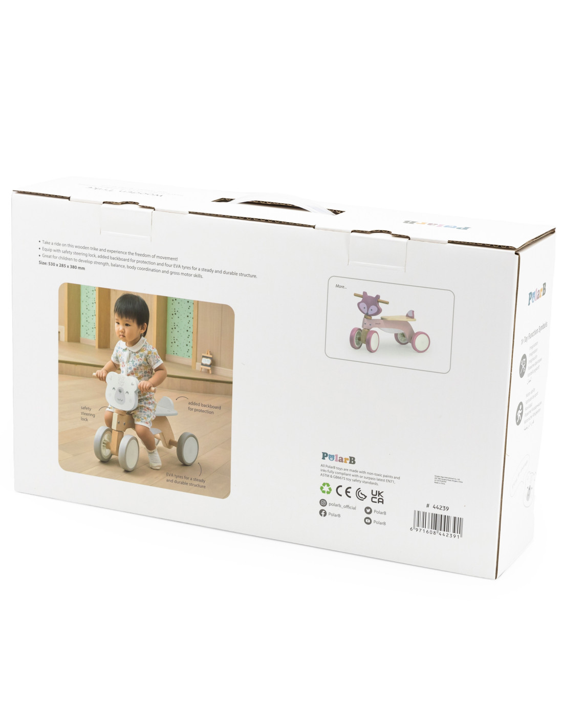 Drewniany rowerek biegowy od marki VIGA z serii PolarB, to bezpieczny sprzęt dobrej jakości, który będzie cieszył twoje dziecko przez długi czas. Wyposażony w bezpieczną blokadę kierownicy, dodatkową tablicę zabezpieczającą i cztery Opony EVA są ciche i trwałe, co jest ważne zarówno dla rodziców, jak i maluchów. Dodatkowo rowerek jest wykonany z najlepszej jakości drewna. Kierownica zrobiona jest na kształt uroczego misia- wszystkie te elementy tworzą spójną całość, która cieszy oko rodzica i dziecka.