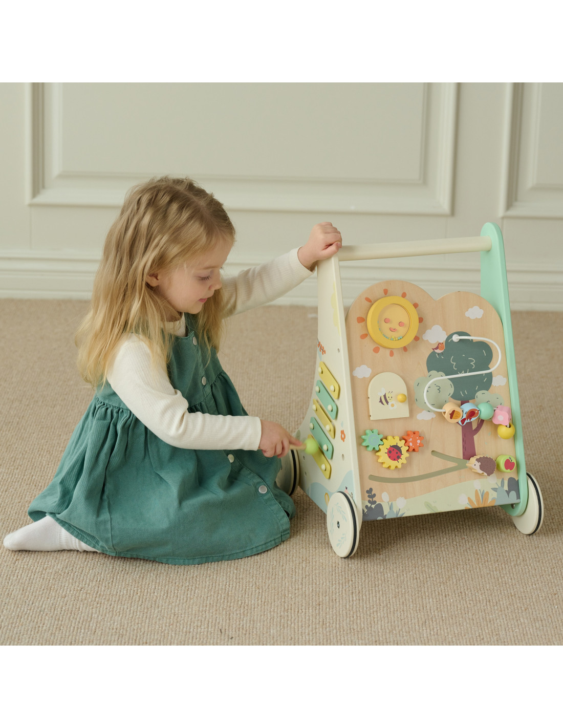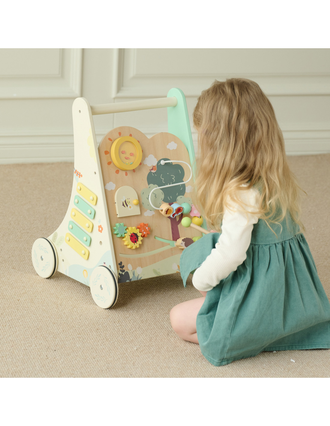 - - Drewniana stabilna konstrukcja, zapewniająca bezpieczna naukę stawiania pierwszych kroków