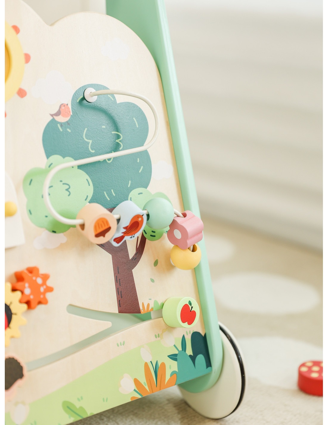 - - Rozwój zdolności motorycznych - Przesuwanie koralików, sortowanie klocków i zabawa kołami zębatymi wymagają precyzji i siły, co wspiera rozwój małej motoryki i wzmacnia mięśnie dłoni.