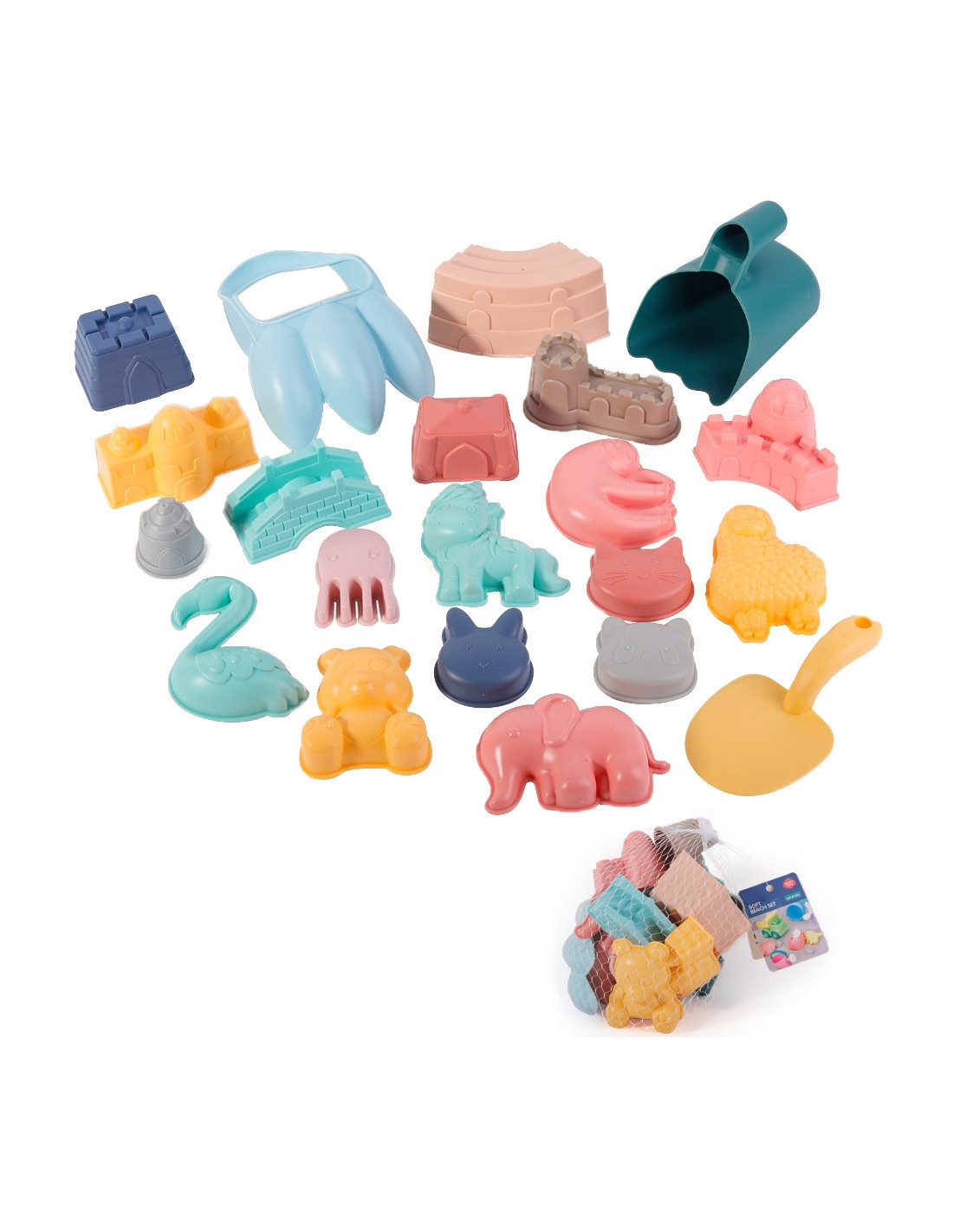 Zestaw do Piasku od marki WOOPIE to świetny dodatek do piaskownicy, a nawet ogrodu. Zestaw zawiera 21 elementów: 18 foremek i 3 różne łopatki. Zestaw ma piękny pastelowy design. . Gwarancja super zabawy w piaskownicy, na plaży, a nawet w ogrodzie!. Produkt przeznaczony dla dzieci powyżej 3 roku życia.