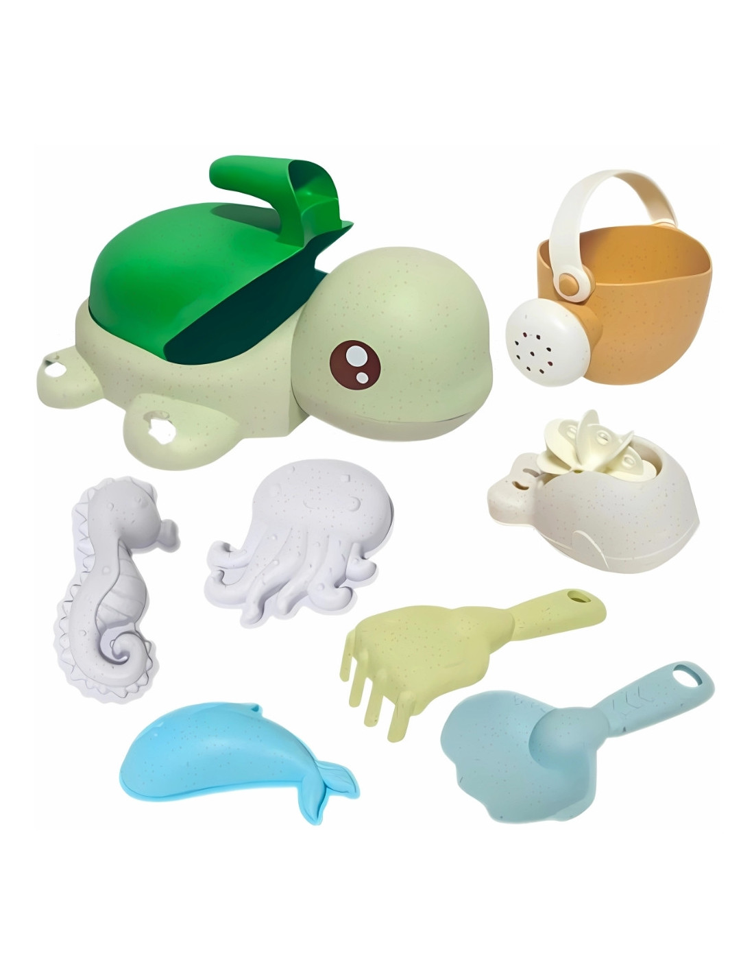 Zestaw do Piasku i Wanny Żółwik od marki WOOPIE z serii WOOPIE GREEN to świetny dodatek do piaskownicy, ogrodu a nawet wanny. Zestaw zawiera 8 elementów: żółwia + gumowe przyssawki, łyżkę, konewkę, 3 foremki, łopatkę i grabki oraz kołowrotek. Wiaderko ma wygodny uchwyt do przenoszenia. Zestaw ma najmodniejszy pastelowy design oraz został wykonany z organicznego i biodegradowalnego (podlegającemu samoistnemu rozkładowi) materiału. Dodatkowo podlega kompostowaniu. Produkt bezpieczny dla dzieci - dezynfekowany w 120 stopniach. Gwarancja super zabawy w piaskownicy, na plaży, w ogrodzie a nawet w wannie! Produkt przyjazny środowisku!