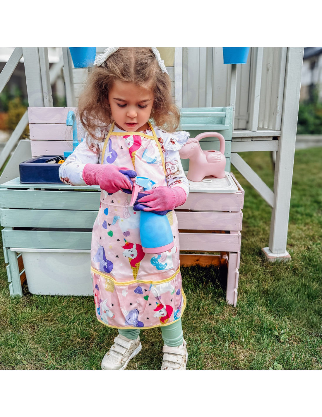 - - Kolorowy fartuszek z motywem jednorożca – ochrona i zabawa w jednym