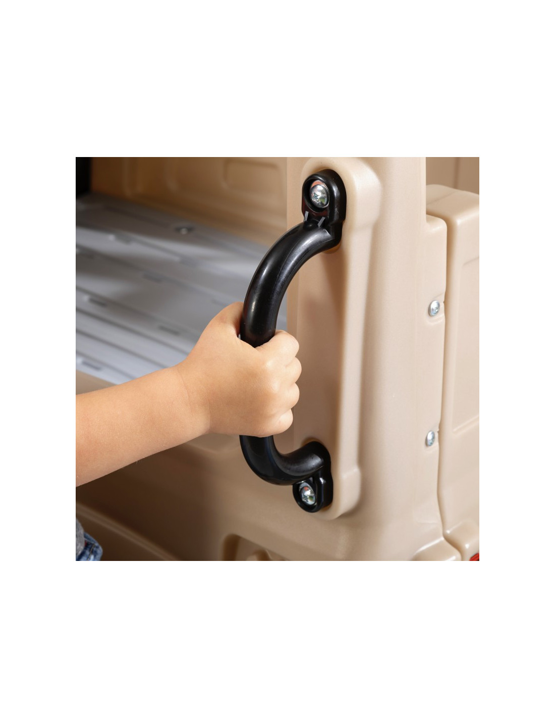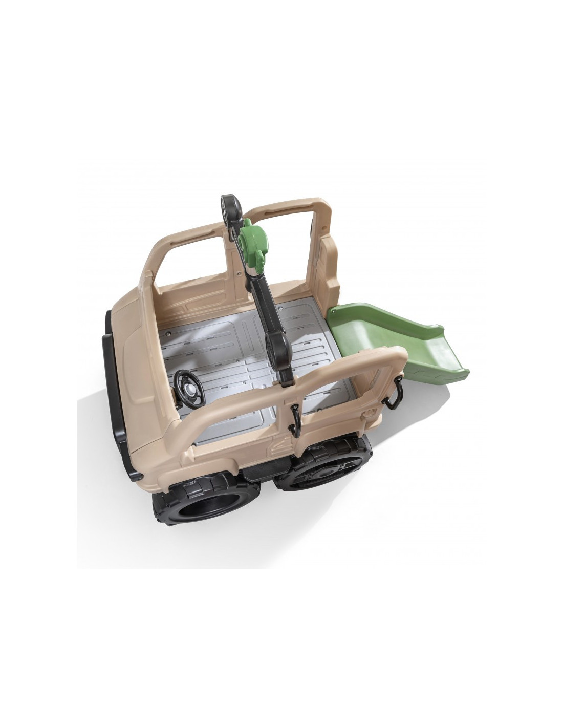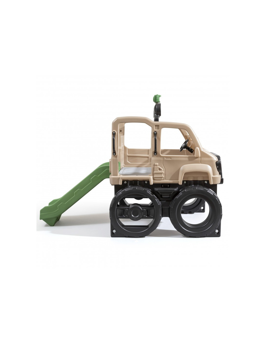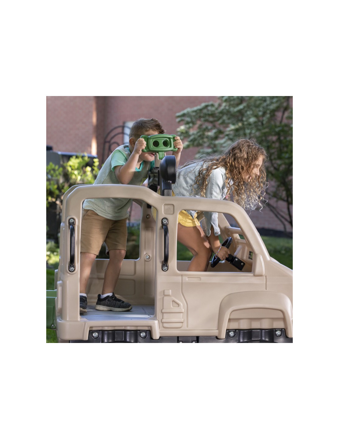Safari Truck od marki Step2 to solidna platforma wspinaczkowa ze zjeżdżalnią w kształcie samochodu terenowego. Realistyczny wygląd pojazdu, duże koła oraz otwarty dach zachęca dziecko do zabawy w ogrodzie. Mali poszukiwacze przygód mogą wspiąć się na ogromne koła, jak po schodach, na najwyższą platformę, gdzie znajduje się lornetka przez którą mogą dostrzec dziką przyrodę. Plac zabaw wykonany jest z wysokiej jakości bezpiecznego tworzywa sztucznego, wytrzymałe i trwałe.