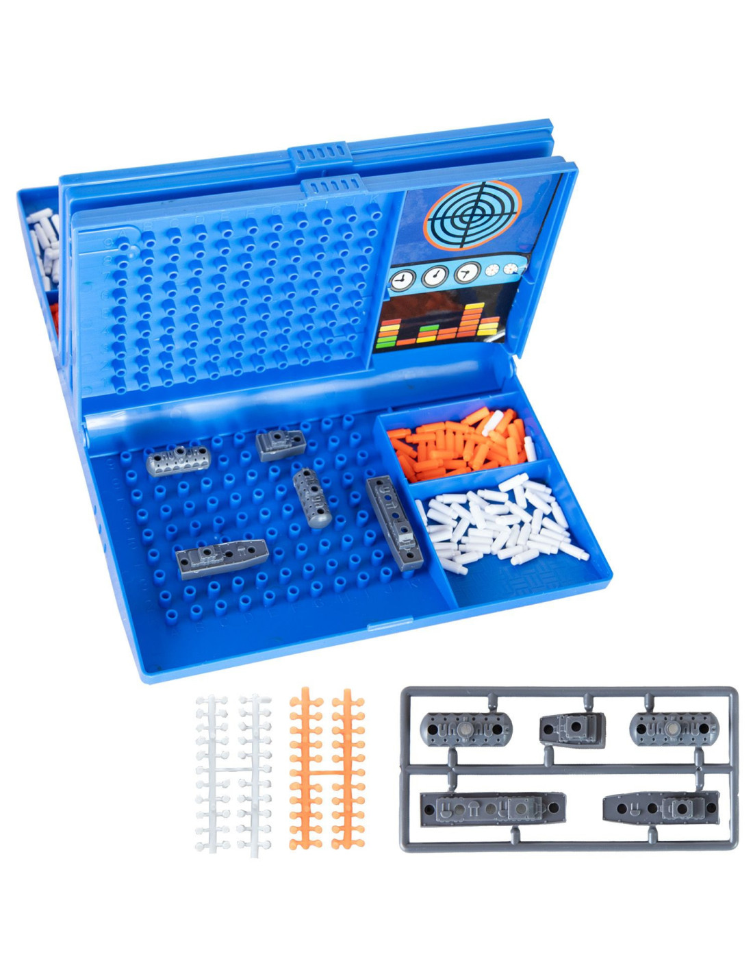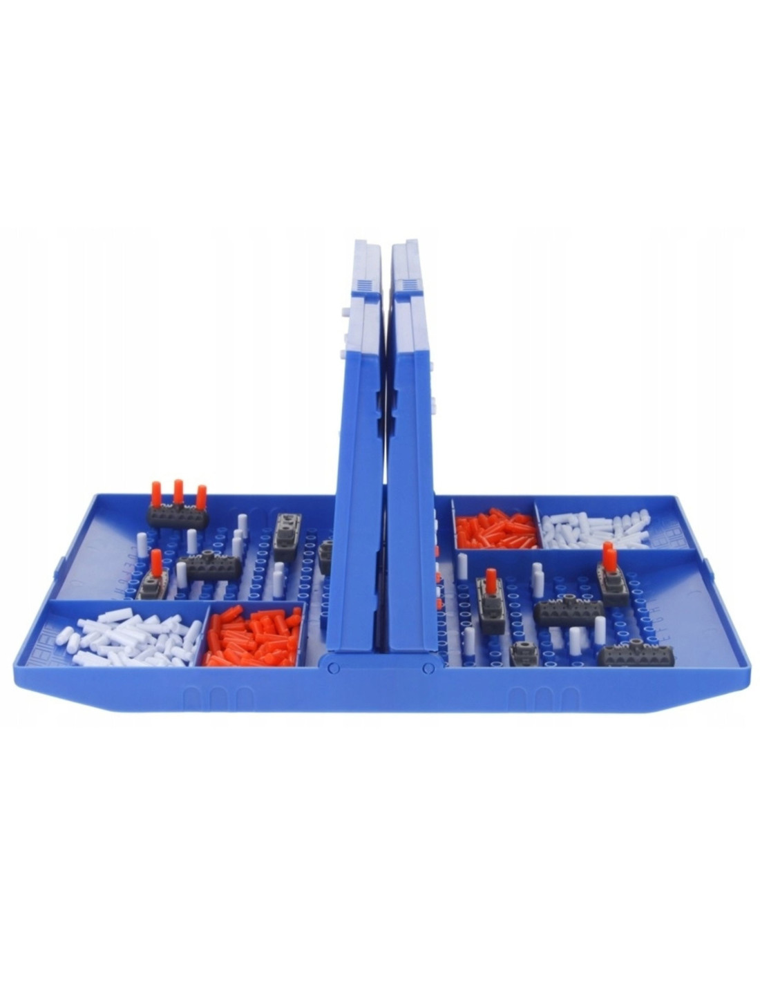 - Rozpoczęcie: Gracze siadają naprzeciwko siebie i rozkładają swoje walizki tak, aby przeciwnik nie widział układu statków drugiej osoby.