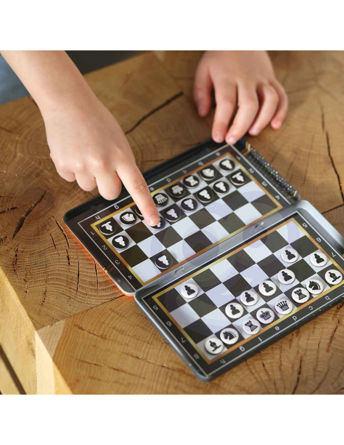 Szachy magnetyczne od Woopie to ciekawa propozycja dla osób, które dużo podróżują. Seria gier magnetycznych w mini formacie, zmieści się do każdej torebki. Gra mało waży, dzięki czemu zawsze możemy ją mieć pod ręką. Sprawdzi się podczas czekania na wizytę u lekarza, w dłuższej podróży samochodem czy samolotem. Metalowe pudełko służy nam za planszę, dzięki czemu gabaryt gry ograniczony jest do minimum.