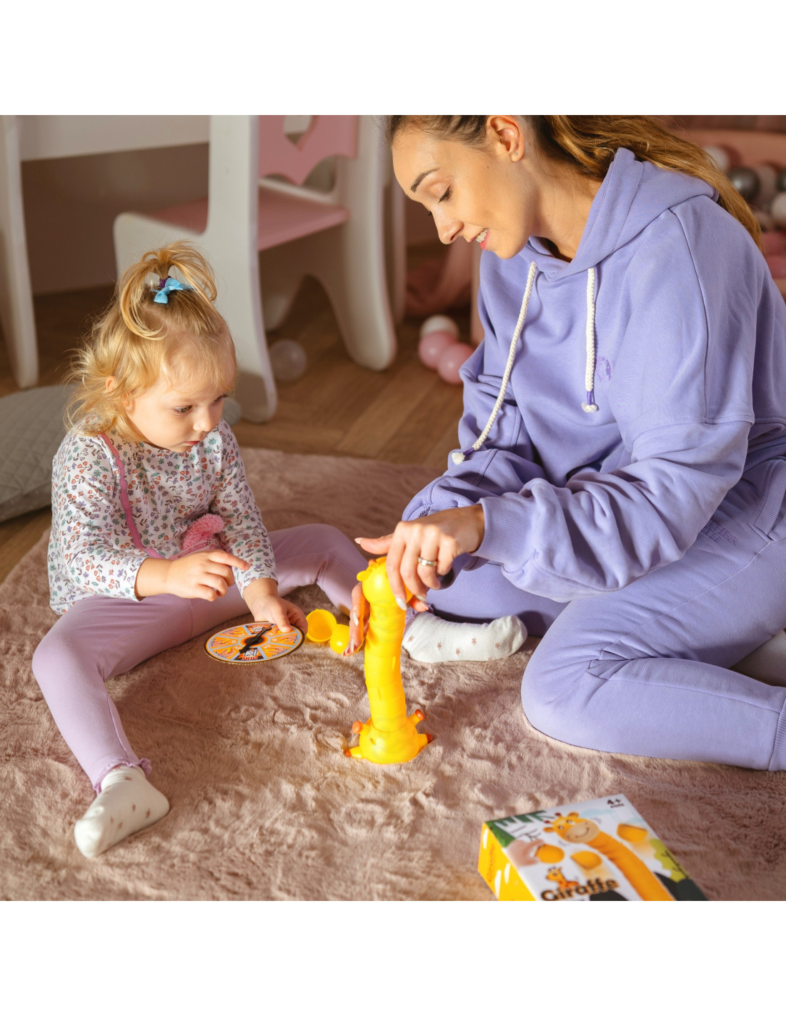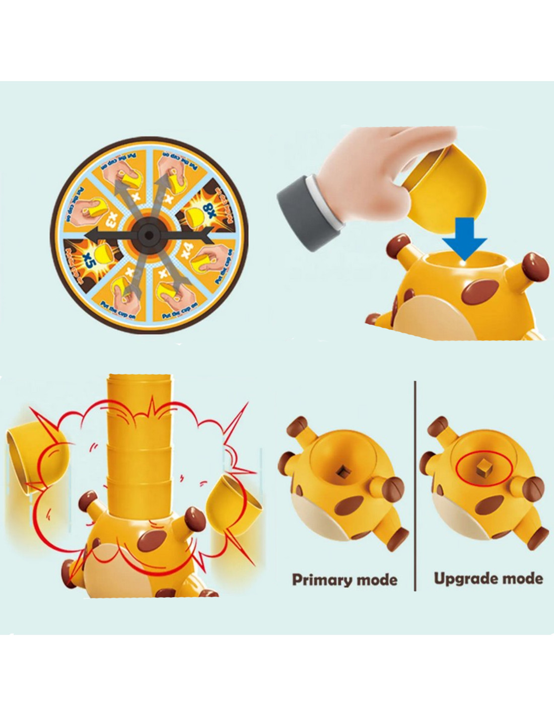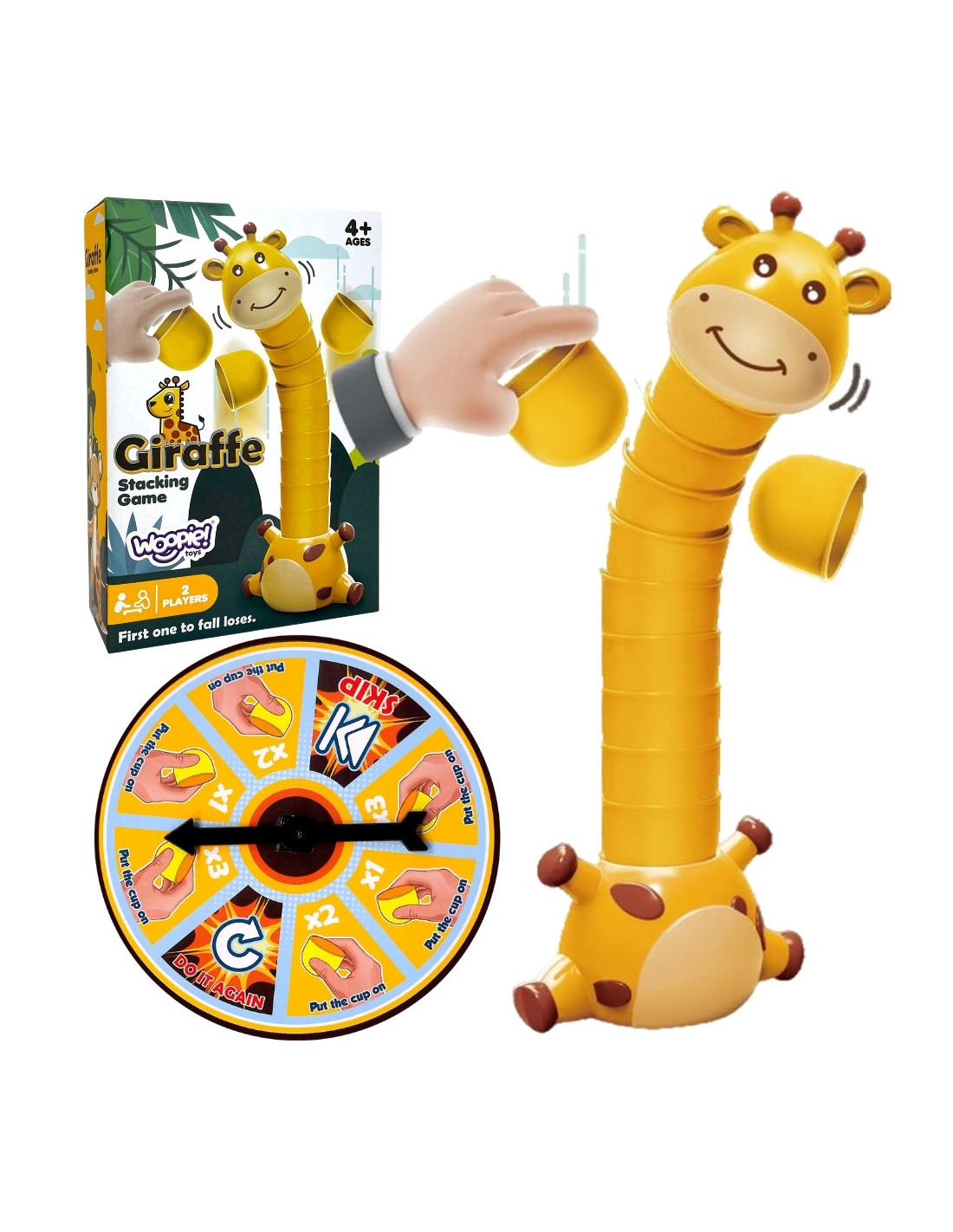 Gra polega na ułożeniu jak najwyższej wieży tym samym szyj żyrafki. Koło fortuny decyduje o każdym następnym kroku, ile kubeczków trzeba dołożyć do szyj. Gra kończy się gry jeden z graczy przewróci żyrafkę.