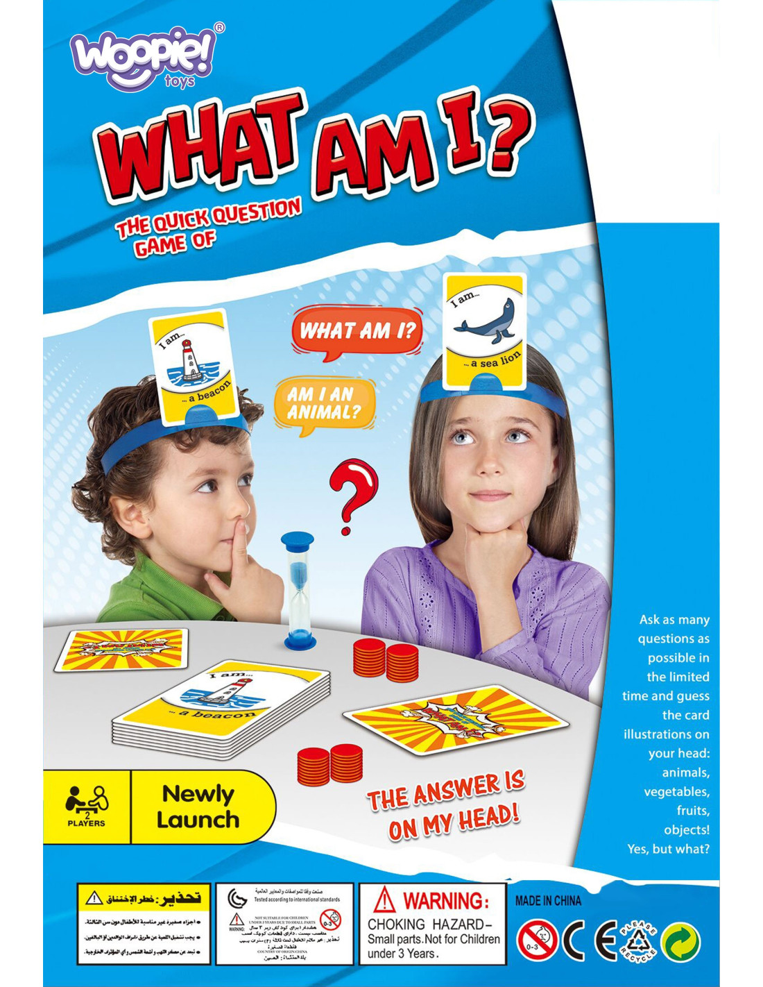 Gra Woopie "Kim jestem?" to wesoła zabawa dla dzieci, która rozwija ich ciekawość i logiczne myślenie. Zadaniem maluchów jest odgadnięcie, co przedstawia karta przypięta do ich opaski, zadając pytania typu „Czy jestem zwierzątkiem?”, „Czy mam skrzydła?”. Proste zasady sprawiają, że dzieci szybko zrozumieją, jak grać, a emocjonujące odgadywanie sprawi im mnóstwo frajdy. To świetny sposób na zajęcie czasu w kreatywny i rozwijający sposób, zarówno w domu, jak i w przedszkolu.