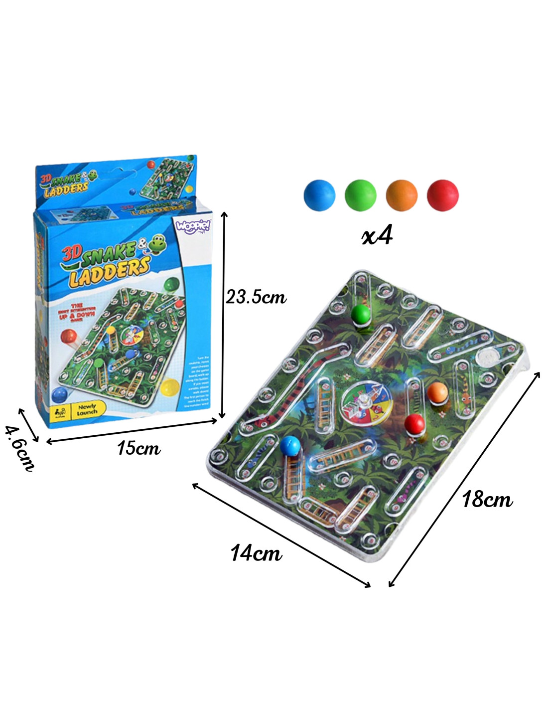 Odkryj fascynujący świat klasycznej gry "Węże i Drabiny" w nowoczesnej, trójwymiarowej odsłonie! Ta wyjątkowa zabawka marki Woopie łączy tradycyjną rozgrywkę z elementami zręczności i precyzji, oferując dzieciom niezapomnianą przygodę pełną emocji. Kolorowa plansza z tropikalnym motywem dżungli z przezroczystymi tunelami, wbudowanym spinnerem i czterema kolorowymi kulkami zapewnia godziny fascynującej zabawy dla 2-4 graczy.