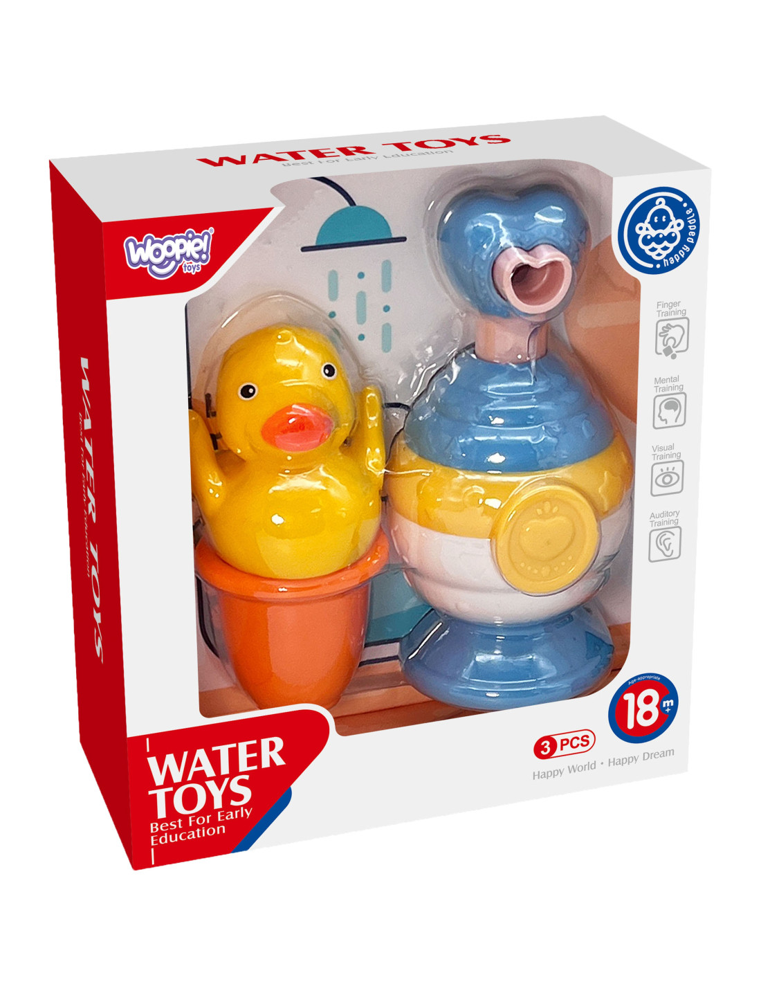 Zestaw Zabawek do Kąpieli od marki WOOPIE to nie tylko zabawka, ale i sposób na zamienienie codziennej kąpieli w prawdziwą przygodę! Zestaw składa się z: uroczej kaczuszce, ślicznemu dozownikowi mydła i kolorowemu kubeczkowi.Ta innowacyjna mydelniczka to coś więcej niż zwykły dozownik mydła! Wyposażona w funkcję spieniania, zamienia zwykłe mydło w delikatną, puszystą pianę, która nie tylko świetnie myje, ale też tworzy mnóstwo zabawy dla malucha. Kaczuszka beztrosko unosząca się na wodzie zachęci każde dziecko do kreatywnej zabawy, a kubeczek przelewowy to kolejny magiczny element zestawu, który pozwala dzieciom na niekończącą się zabawę z wodą – maluch może przelewać wodę z jednego miejsca do drugiego, obserwując, jak zmienia się jej przepływ.