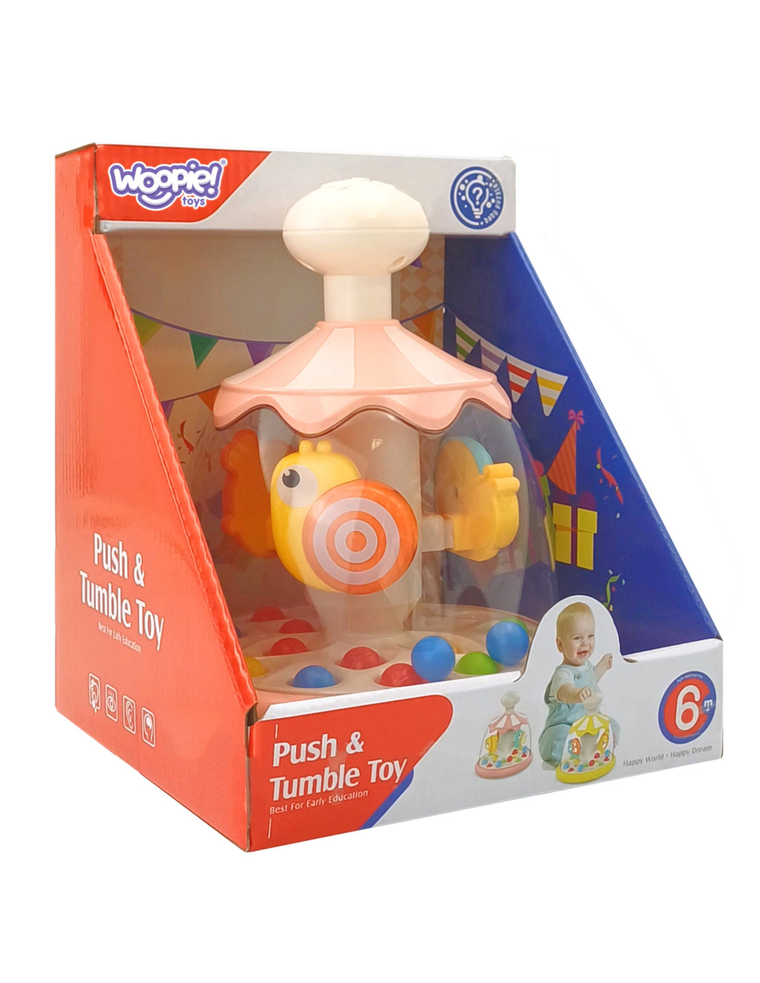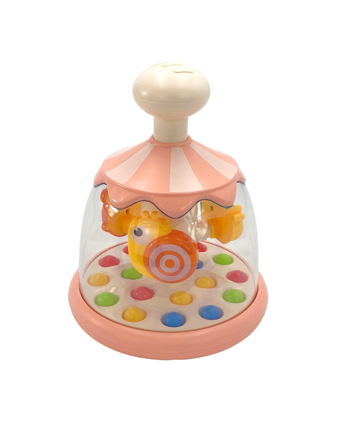 Wesoły i kolorowy bączek ze zwierzątkami od marki Woopie to doskonała propozycja, która gwarantuje maluchom niezapomniane chwile radości i rozwoju. Po naciśnięciu białego przycisku, urocze zwierzątka zaczynają radośnie krążyć a kolorowe kulki wewnątrz zabawki podskakiwać, tworząc efekt miniatury prawdziwej karuzeli. Zabawkę śmiało można wprowadzić do użytku już od 6 miesiąca życia, co czyni ją idealnym prezentem dla najmłodszych. Woopie znane jest z wysokiej jakości i bezpieczeństwa swoich produktów, wiec rodzice mogą mieć pewność, że bączek spełni wszystkie normy bezpieczeństwa.