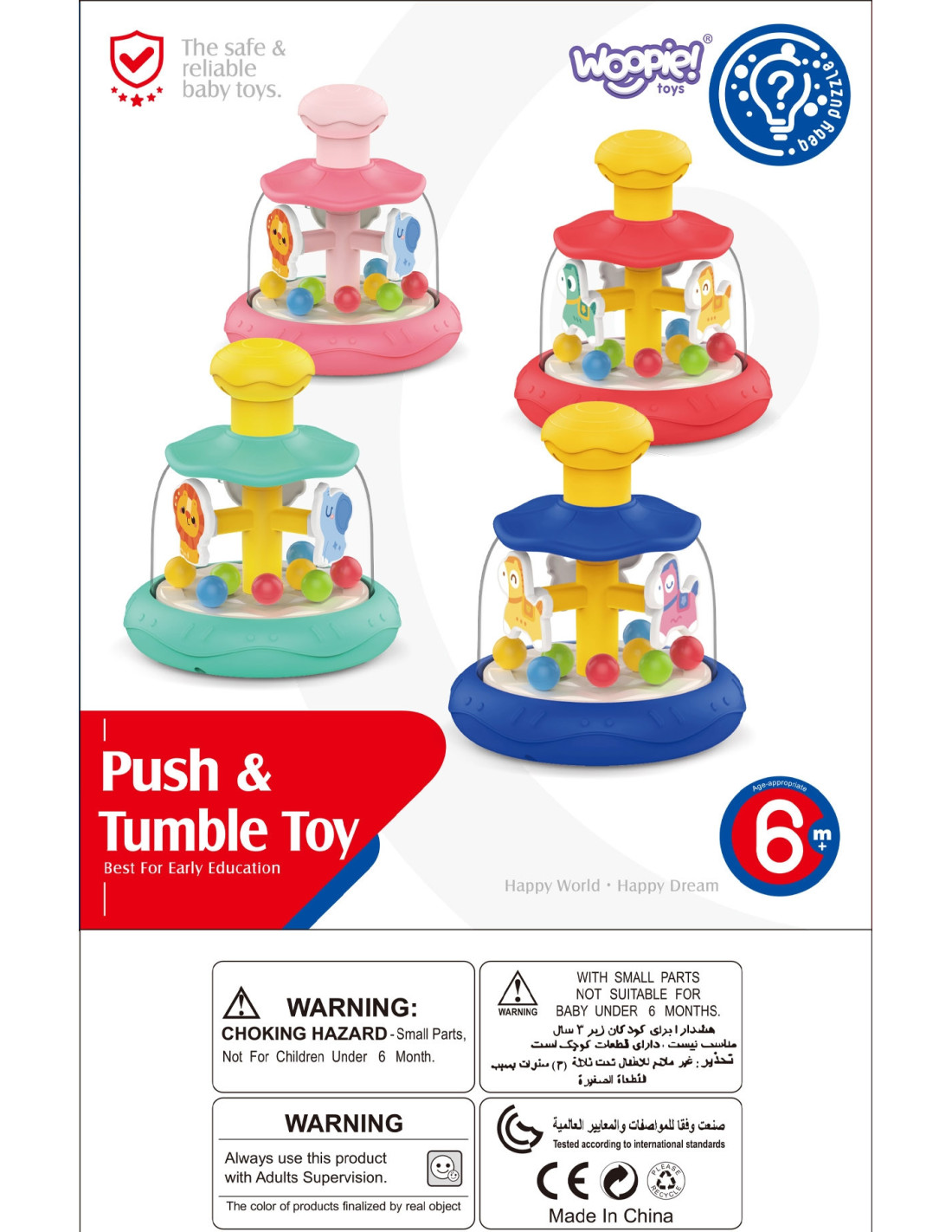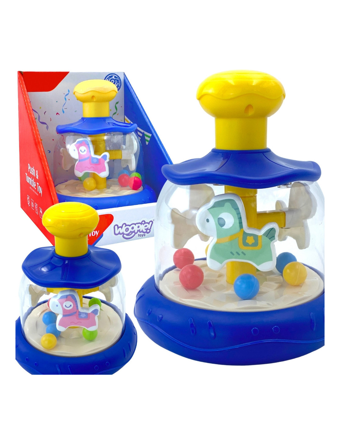 Pozwól swojemu dziecku odkrywać świat poprzez zabawę dzięki wspaniałej zabawce "Zakręcony Bączek"! Ta innowacyjna i kolorowa zabawka została stworzona z myślą o najmłodszych odkrywcach, dostarczając nie tylko mnóstwo radości, ale również wspomagając ich rozwój w kluczowych obszarach. Dzięki solidnej konstrukcji i żywym barwom, zabawka przyciąga uwagę dziecka jednocześnie wspierając rozwój ich zdolności motorycznych, sensorycznych i poznawczych. Jest to idealny wybór dla każdego rodzica, który pragnie, aby ich maluch rozwijał się w atmosferze zabawy i radości. Wystarczy, że dziecko naciśnie górną, żółtą część karuzeli, a konik i kuleczki zaczną się poruszać po całej karuzeli.