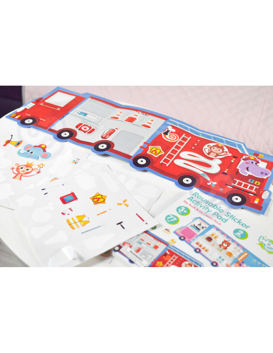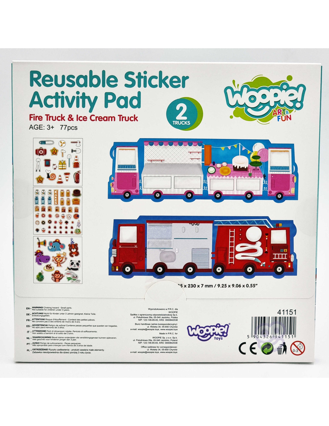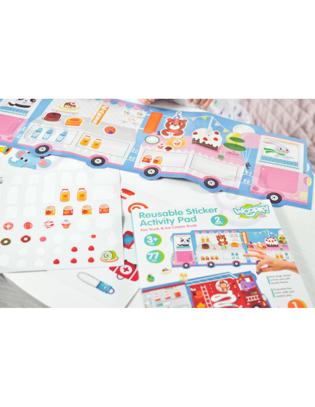 WOOPIE ART&FUN Naklejki Wielorazowe Zestaw Kreatywny Wyklejanka Pojazdy Straż Pożarna Lodziarnia 77 el.