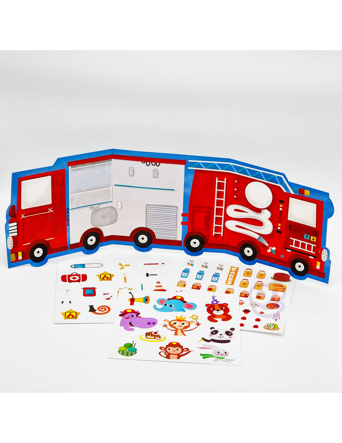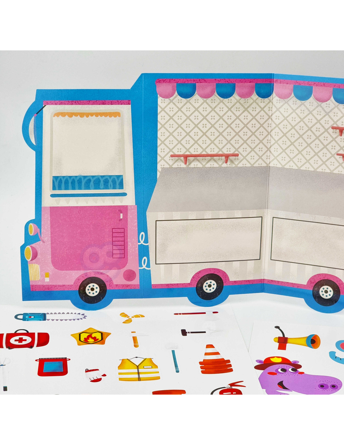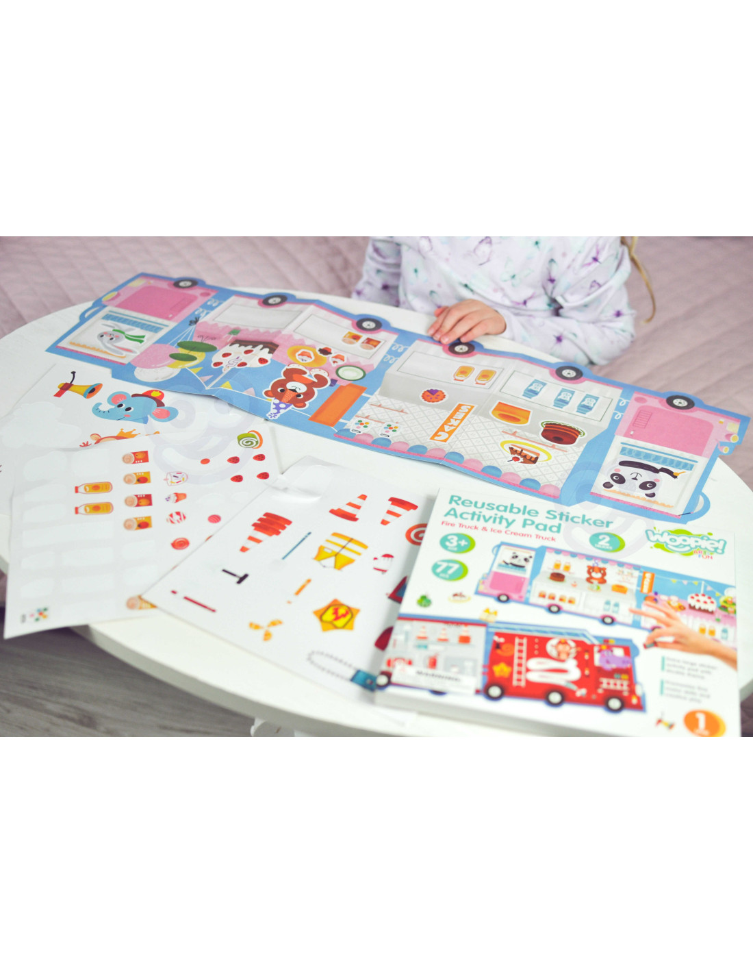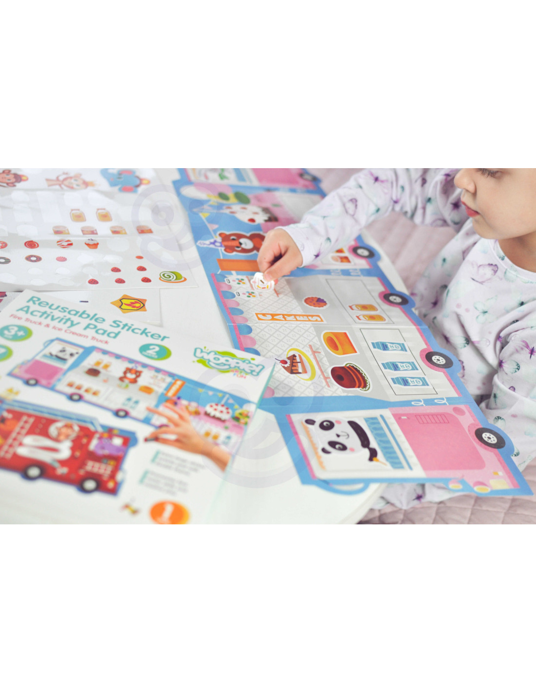 WOOPIE ART&FUN Naklejki Wielorazowe Zestaw Kreatywny Wyklejanka Pojazdy Straż Pożarna Lodziarnia 77 el.