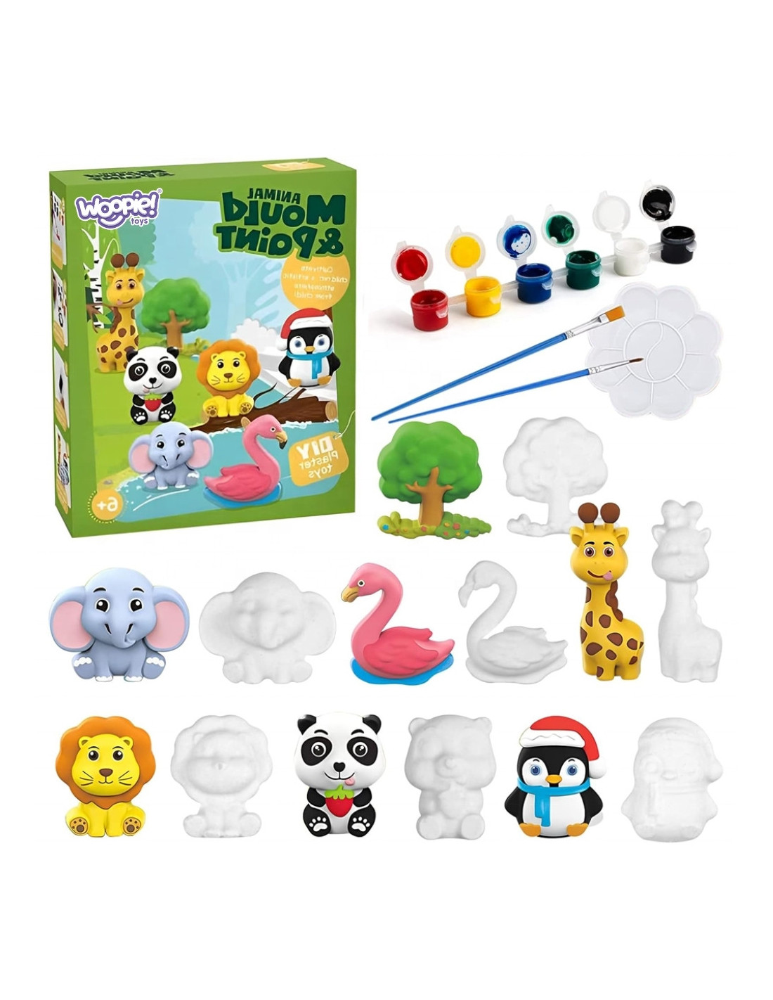 Stwórz własne mini zoo z zestawem DIY Animal Mould & Paint od marki WOOPIE! Ten wyjątkowy zestaw plastyczny pozwala dziecku samodzielnie odlać i pomalować urocze zwierzątka z gipsu – to świetna zabawa i rozwój w jednym. Idealny dla dzieci od 6. roku życia, które uwielbiają tworzyć, malować i eksperymentować z kolorami!