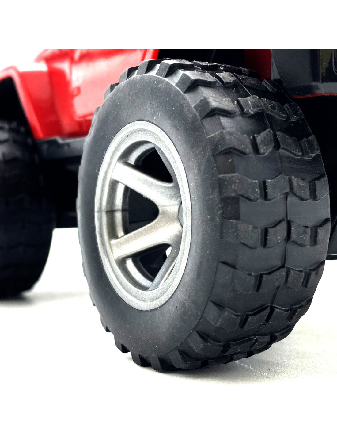 Czerwony Samochód Terenowy Jeep od marki WOOPIE sprawi frajdę każdemu małemu kierowcy. Autko wykonane z plastiku z gumowym bieżnikiem na kołach. Samochód wyposażony jest w efekty dźwiękowe i świetlne, dzięki czemu zabawa będzie jeszcze bardziej realistyczna. Auto z napędem friction, wystarczy pchnąć je do przodu, aby samo pojechało.