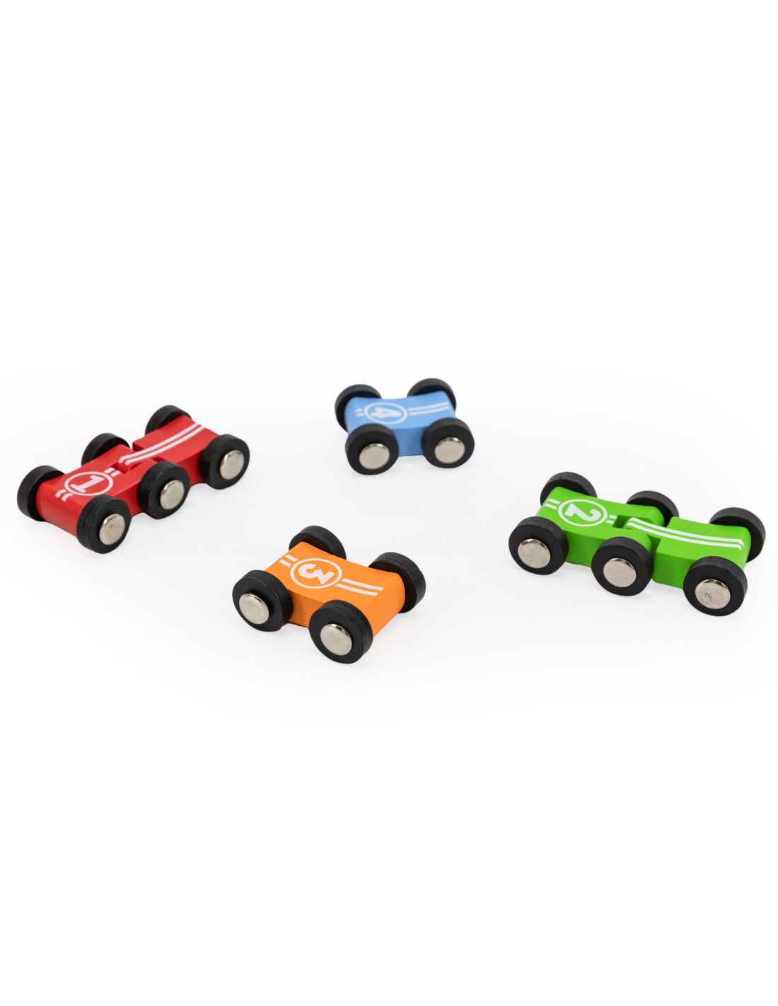 - - zestaw zawiera tor oraz 4 kolorowe samochodziki